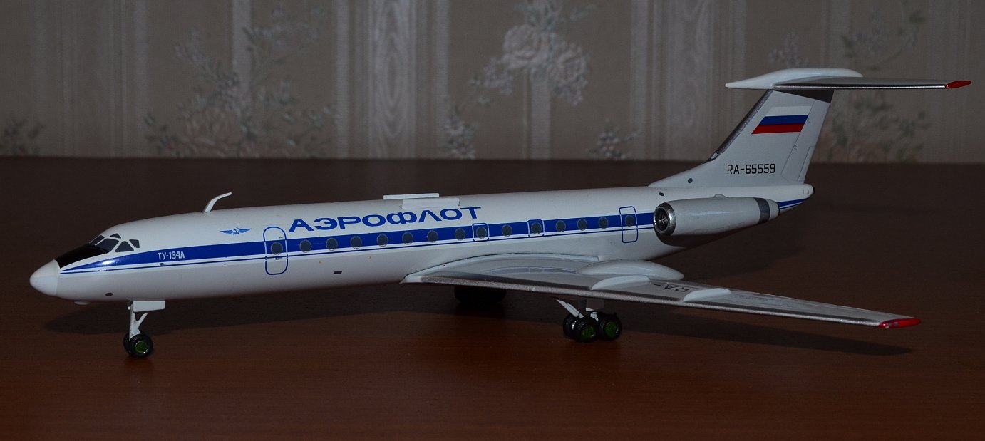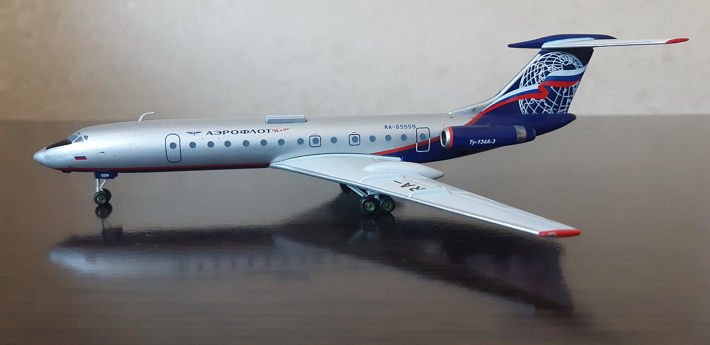 Ту-134 их Феникс выпускал, болванки у них ещё примерно 2014 года, улучшать за это время ничего не стали. У меня их 3 штуки в советской ливрее, далее с Российским уже флагом серым хвостом и цельным носом. И крайнюю брал в ливрее Аэрофлот Плюс, достаточно тоже редкая на мой взгляд. На этих моделях пришлось диски покрасить в родной болотный цвет, на первом ещё и нижнюю антенну прилепил.