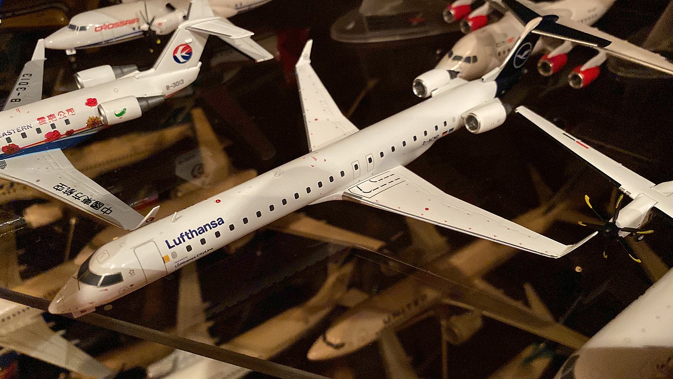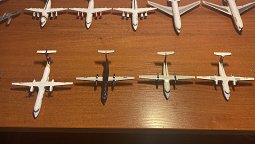 На примере Dash 8 видно - все четыре его модификации: три «Дашки» от Gemeni и одна черная 300-ка от JC Wings - высота по законцовкам крыла разная - приходится на полке при установке рядом нужный ракурс искать.