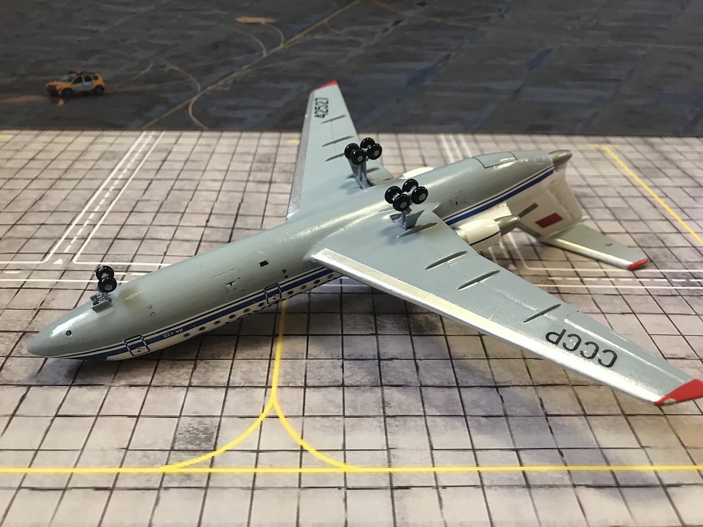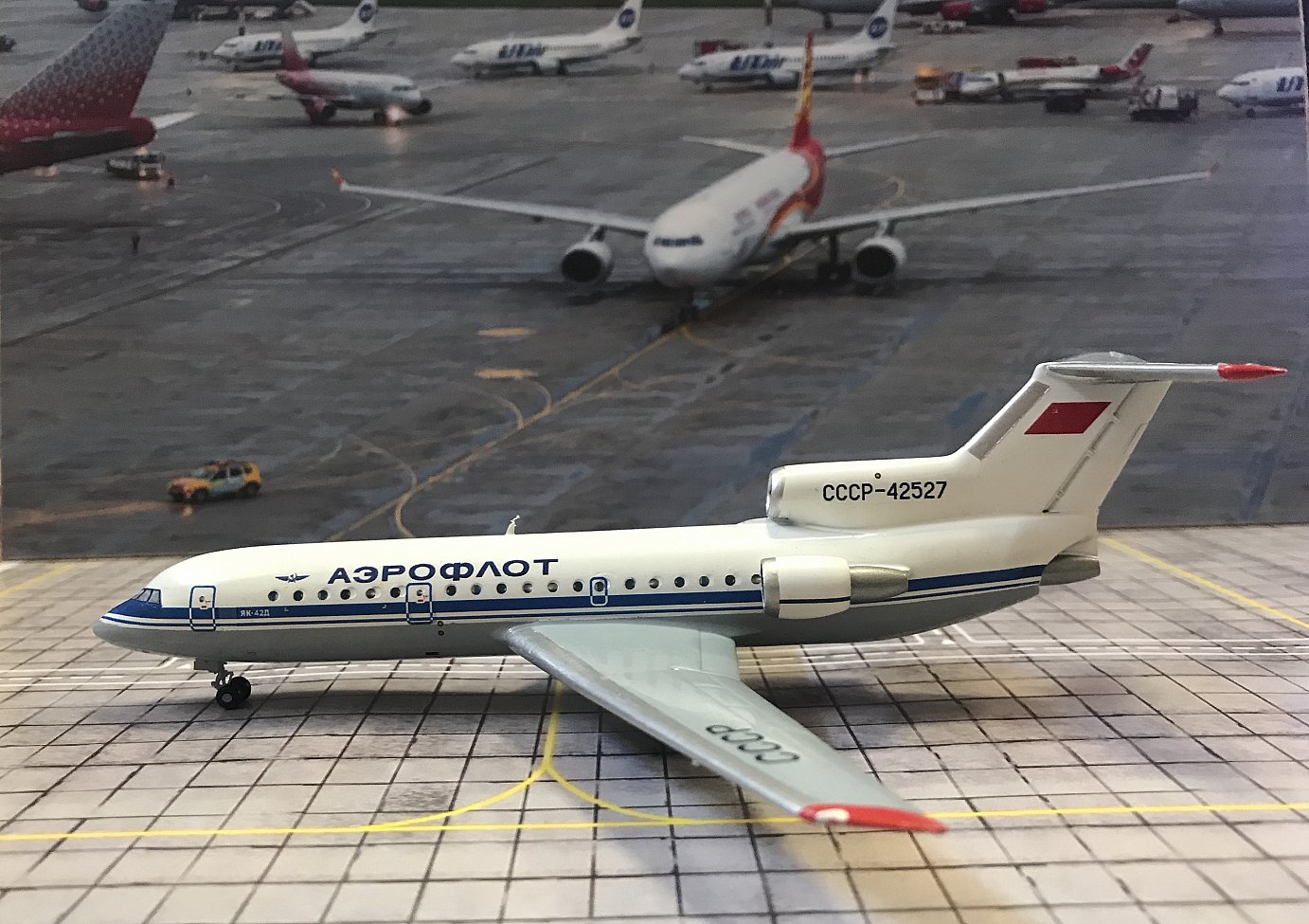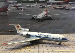 Добрый день, уважаемые коллеги! Предлагаю вашему вниманию модель самолета Як42 - обладатель 9-и мировых рекордов в своем классе, но, увы не заслужено обойденный вниманием в масштабе 200. ОКБ Яковлева одно из старейших, компетенция и конструкторская школа которого авторитетна и в настоящее время. Благодаря ему в период ВОВ было выпущено самое большое количество боевых самолетов, которые внесли огромный вклад в нашу Победу. Как известно, ОКБ Яковлева специализировалось в основном, на создании учебных, спортивных и военных самолетах, в основном истребителей. Разработкой вертолетов и многоместных пассажирских самолетов, фирма вообще не занималась. Но всегда когда Стране нужно было, что-то новое, они это делали, и попадание было всегда в «десятку». Например: вертолет-вагон Як24 или самолеты вертикального взлета-посадки Як38, Як141. А пассажирский красавец Як40 способный взлетать с коротких грунтовых полос и высокогорных аэродромов, стал фурором в ГВФ СССР, не смотря на его прожорливость и обидное прозвище «Окурок» из-за дымного следа. И вот в 1971 году правительство СССР поставило новую задачу - создать пассажирский среднемагистрал, соответствующий требованиям полетов по ИКАО . Конструкторы ОКБ Яковлева, используя опыт полученный при создания Як-40, за 4 года создали современную машину Як42 – 120-местный самолет повышенной комфортности, с низким расход топлива и уровнем шума, с автономным запуском и собственным трапом, которые сокращали аэродромные расходы и хлопоты аэродромного персонала. В общем опять попадание в «десятку». Летчики-испытатели отмечали его прекрасную энерговооруженность, отличную управляемость, устойчивость и хорошие пилотажные качества. Все это позволило Як42 получить допуск к полетам в Европе без ограничений и в очередной раз доказать мировому авиационному сообществу компетентность СССР и в среднемагистральном классе самолетов. Всего было выпущено 194 самолета, а потом перестройка, новая страна и демагогические непонятные лозунги "экономика-должна быть экономной", "электричество - электрическим". В связи с закрытием Саратовского авиазавода 2003 году серийное производство самолета прекратилось. В настоящее время летает около 20 самолетов в России и за рубежом, летную годность которых поддерживает ОКБ Яковлева. Известный производитель моделей Херпа, оценил заслуги ОКБ Яковлева, выпустив хорошую модель Як40, но обошел вниманием Як42. Проект КНК исправляет эту несправедливость. Представляю вашему вниманию модель Як42. Модель сделана на уровне, я бы сказал не хуже Херпы, детали хорошо проработаны, модель отлично окрашена, тяжелая, как будто из металла, но это качественно отлитая смола. Модель будет достойно выглядеть в коллекции со своим старшим, но меньшим братом Як40. Заказы возможны. Спасибо, если дочитали до конца!