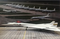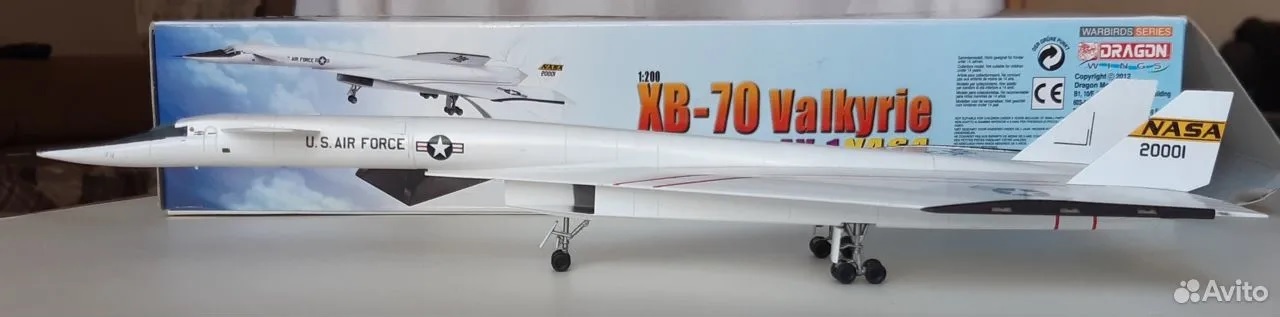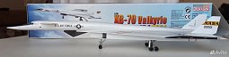 Добрый день, уважаемые коллеги! Предлагаю вашему вниманию на обозрение сверхзвуковой, высотный бомбардировщик B70 «Вальки́рия», спроектированный компанией North American в 1957 году под фантастические характеристики даже для сегодняшнего времени. Этот бомбардировщик можно смело назвать супер самолетом, поднявшемся в небо в 1964 году. Достигнутые им 55 лет назад скорость 3250 км/ч (М=3,08) и высота - 23000м, рекорды, не превзойденные до сих пор для этого класса самолетов. Стратегическое командование США считало, что такие параметры самолета позволят успешно прорывать ПВО СССР для нанесения ядерных ударов, при боевой нагрузке «Валькирии» 29 тонн. Впечатляют и характеристики взлета «Валькирии», 6 двигателей разгоняли её максимально взлетную массу в 236 тонн, в которой почти половина было топливом, так быстро, что длина разбега в 2250 метров давала возможность взлетать с обычных аэродромов. После отрыва самолета на скорости 337км/ч она нарастала настолько быстро, что пилотам, во избежание превышения ограничения по скорости уборки шасси, приходилось по их выражению лететь «тапками выше головы», самолет свечей уходил в небо с вертикальной скоростью 139м/с. Взлет на зависть всем истребителям! Самолет, в действительности обогнал свое время, в нем были применены новые по тем временам технологии и решения, конструктивные материалы из нержавеющей стали составляли 60%, а титанов до 10%, из-за кинетического нагрева обшивки при полёте со скоростью М=3 до 330°С. Треугольное крыло удивляет и сегодня потому, что больше не существовало самолетов, законцовки крыла которых, составляющие 20% площади крыла, отклонялись в полете вниз на 65 градусов, и удерживали сверхзвуковую ударную волну под ним, давая экономию расхода топлива. Кроме этого, они также были дополнительными килями, для обеспечения путевой устойчивости на сверхзвуковых скоростях. Но в случае отказа механизма отклонения законцовок в опущенном положении, посадка самолета была невозможна, а экипажу нужно было катапультироваться. Рабочее место каждого пилота было оборудовано индивидуальной капсулой, обеспечивающей безопасное катапультирование во всем диапазоне скоростей и высот. Система катапультирования смещала кресла пилотов назад в капсулы перед катапультированием. Для улучшения обзора пилотам на взлете и посадки у «Валькирии», в отличии от Конкорда и Ту144, отклонялась только верная панель перед остеклением, которая заходила внутрь неподвижного носа, а также изменялся угол наклона лобового остекления. Топливо самолета было специально разработанным высококалорийным так называемым бороводородным, в последствие ставшим одной из причин свертывания проекта из-за чрезвычайной дороговизны и то, что продукты его сгорания содержали ядовитые вещества. Но это были не главные причины, главным стало то, что советское правительство и разведка не спали все это время. И на испытаниях в СССР появился самолета Миг25, а также усовершенствованные ЗРК, которые гарантировано «приземляли» такой высоко скоростной, высотный и чрезвычайно дорогой проект. Чего-чего, а деньги американцы тоже считать умеют, поэтому проект был сокращен до двух самолетов, вместо 50 и переведен в исследовательский, с передачей ХВ70А в НАСА. Название «Валькирия», взятое из скандинавской мифологии девы-воительници реющей на крылатом коне над полем 