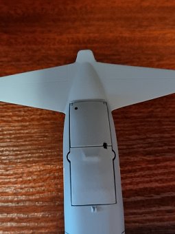 Реплика выполнена с металле в высоком качестве и степени детализации, присутствует большое количество пиктограмм и внешних элементов в виде антенн. Масштаб модели 1:200, что соответствует размеру 170 мм - длина и 202 мм - размах крыльев. Качество производства и покраски традиционно высокое.