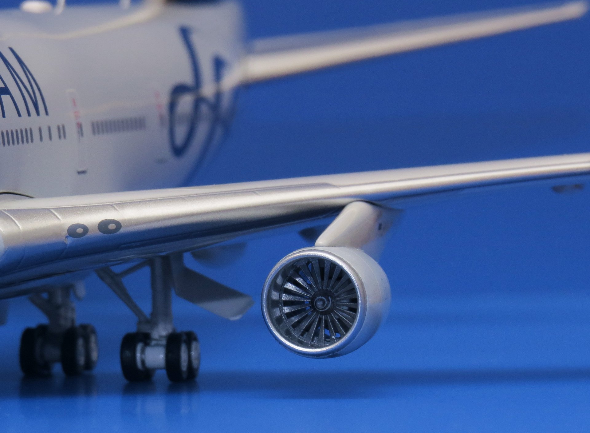 Теперь о самой модели. На коробке, и на модели значится производитель Albatros Models. Но по сути, это всё то же Inflight 200, только под другим именем. Та же пресс-форма, та же подставка. И, конечно же, качество соответствует высокому уровню фирмы. Модель сделана аккуратно, имеет высокий уровень детализации, учтены самые мелкие подробности реального прототипа. Единственное с чем можно немного поспорить - это основной цвет фюзеляжа. На модели он выглядит как серый металлик. Напомню, что фирменная окраска самолётов в ливрее альянса имеет просто серебристый цвет. Да, на разных фотографиях, и при различных погодных условиях цвет и тон фюзеляжа реального самолёта могут отличаться. Но, всё-таки, на мой взгляд, производителям при выборе цвета стоит ориентироваться не фотографии, а на официальные цвета. Хотя, и не спорю, модель в цвете серый металлик выглядит довольно реалистично. В целом я моделью очень доволен, и она заняла достойное место не только в моей коллекции, но и среди своих "брендированных" собратьев, став 56-ой моделью в фирменной ливрее SKYTEAM.