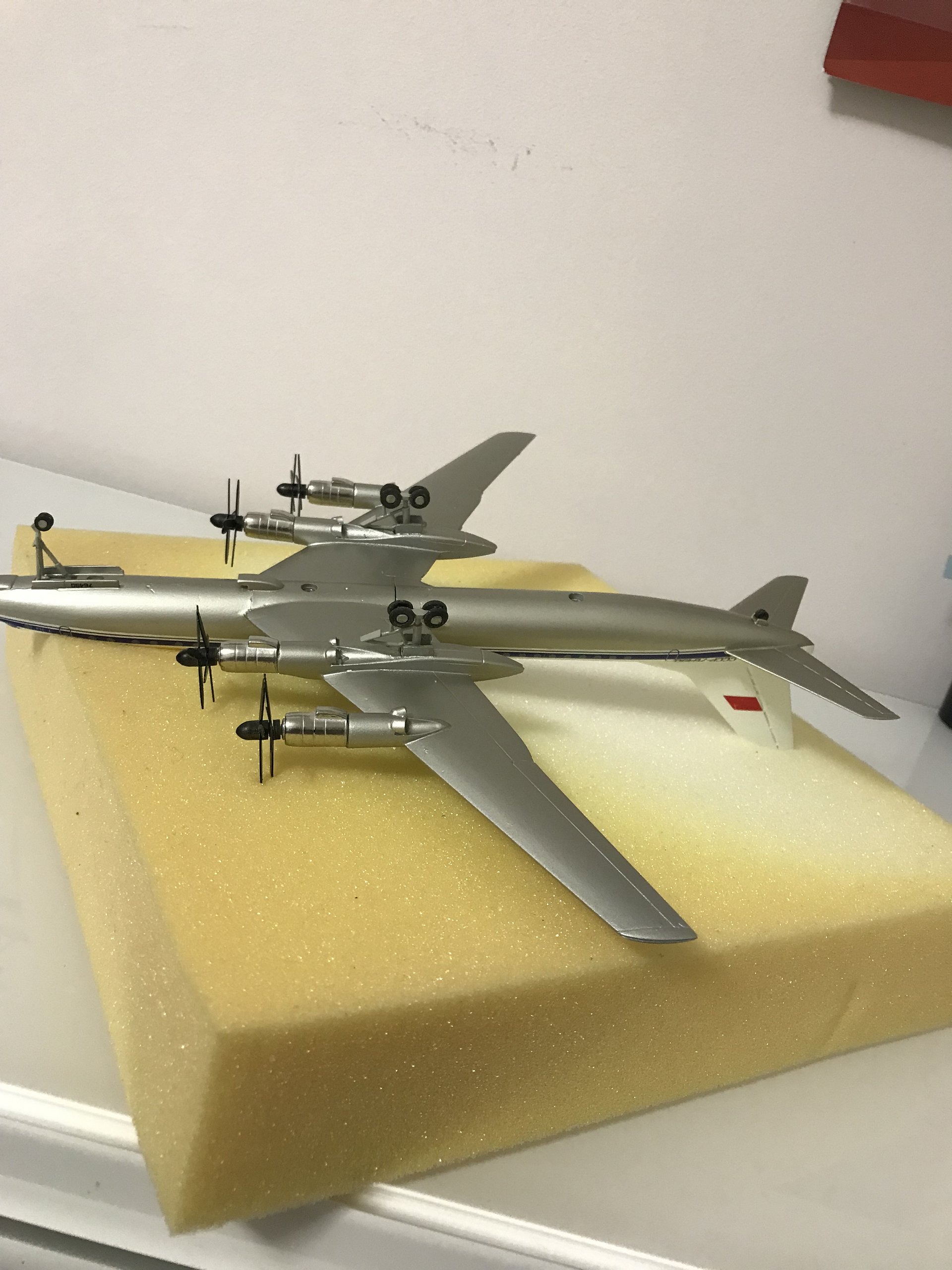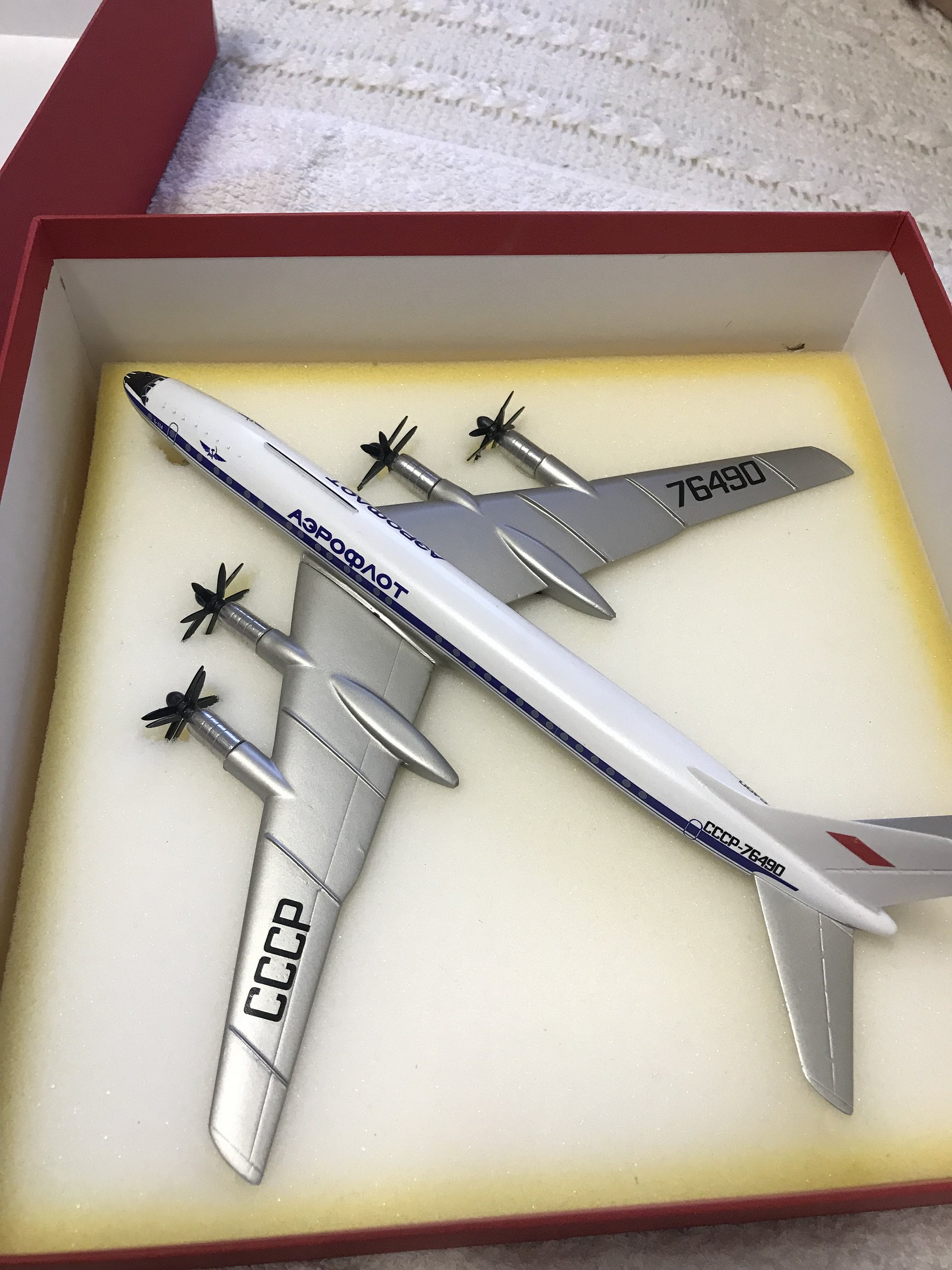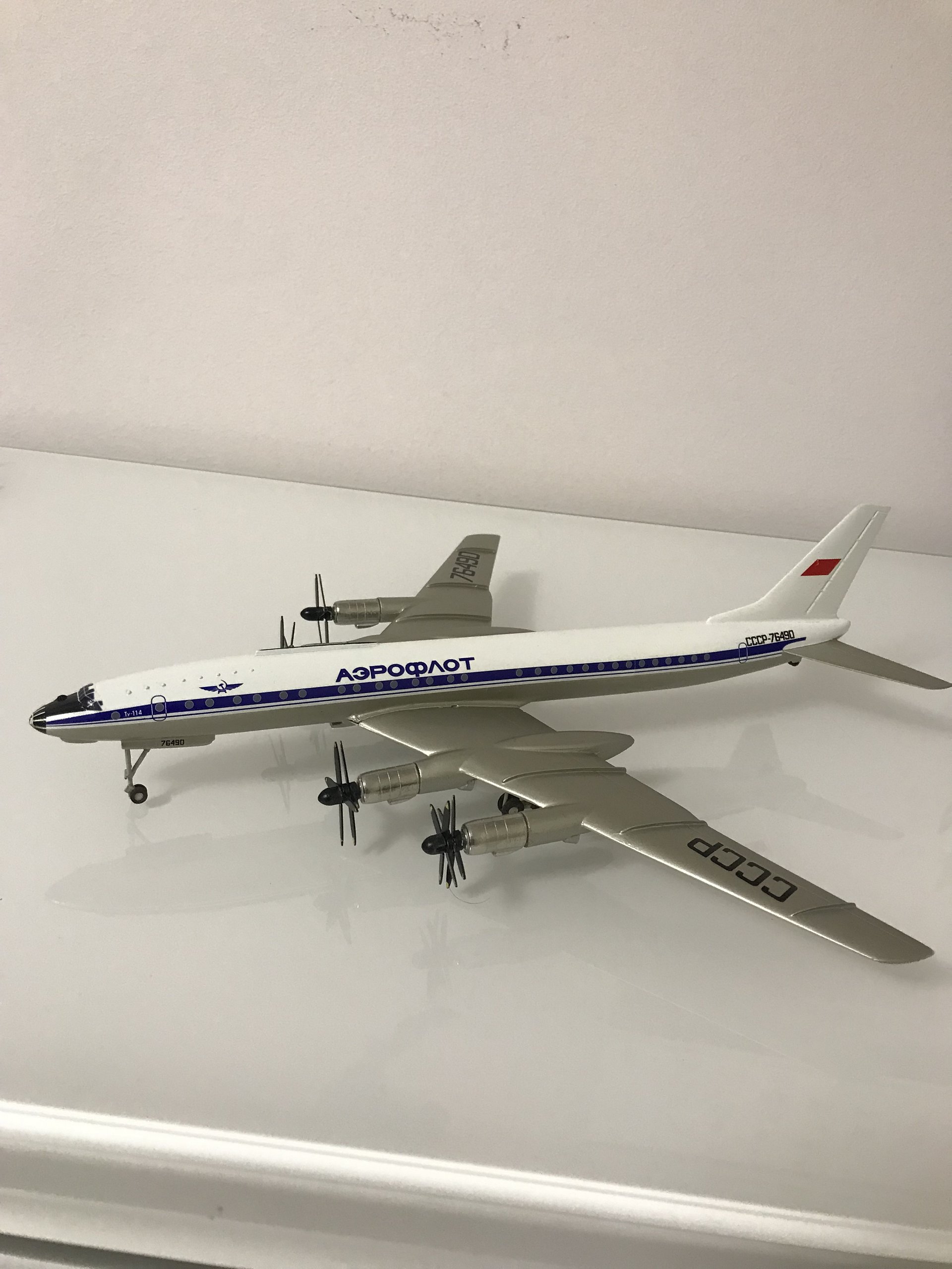 Уважаемые коллеги! Хочу представить Вашему вниманию, раритетную и очень редкую модель Ту-114 в масштабе 200 производства Western Models (Англия). О самом производителе мало информации и количество выпущенных Ту-114 м1:200 установить не удалось. Год выпуска модели ориентировочно более 10 лет назад, в настоящее время не выпускается. На сегодняшний день известно о следующих моделях Ту-114 Western Models 1:200 с бортовыми номерами: