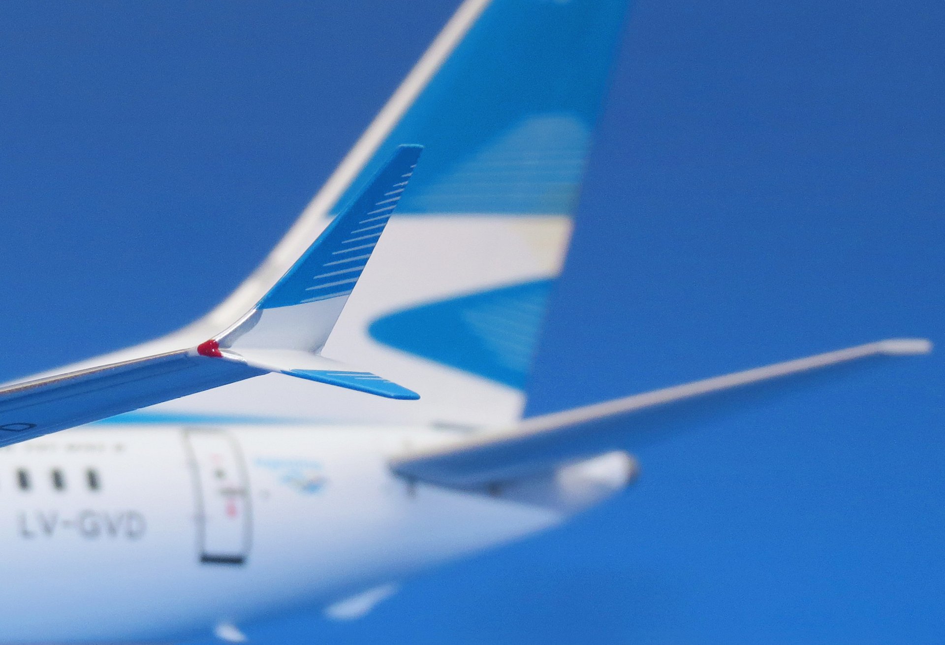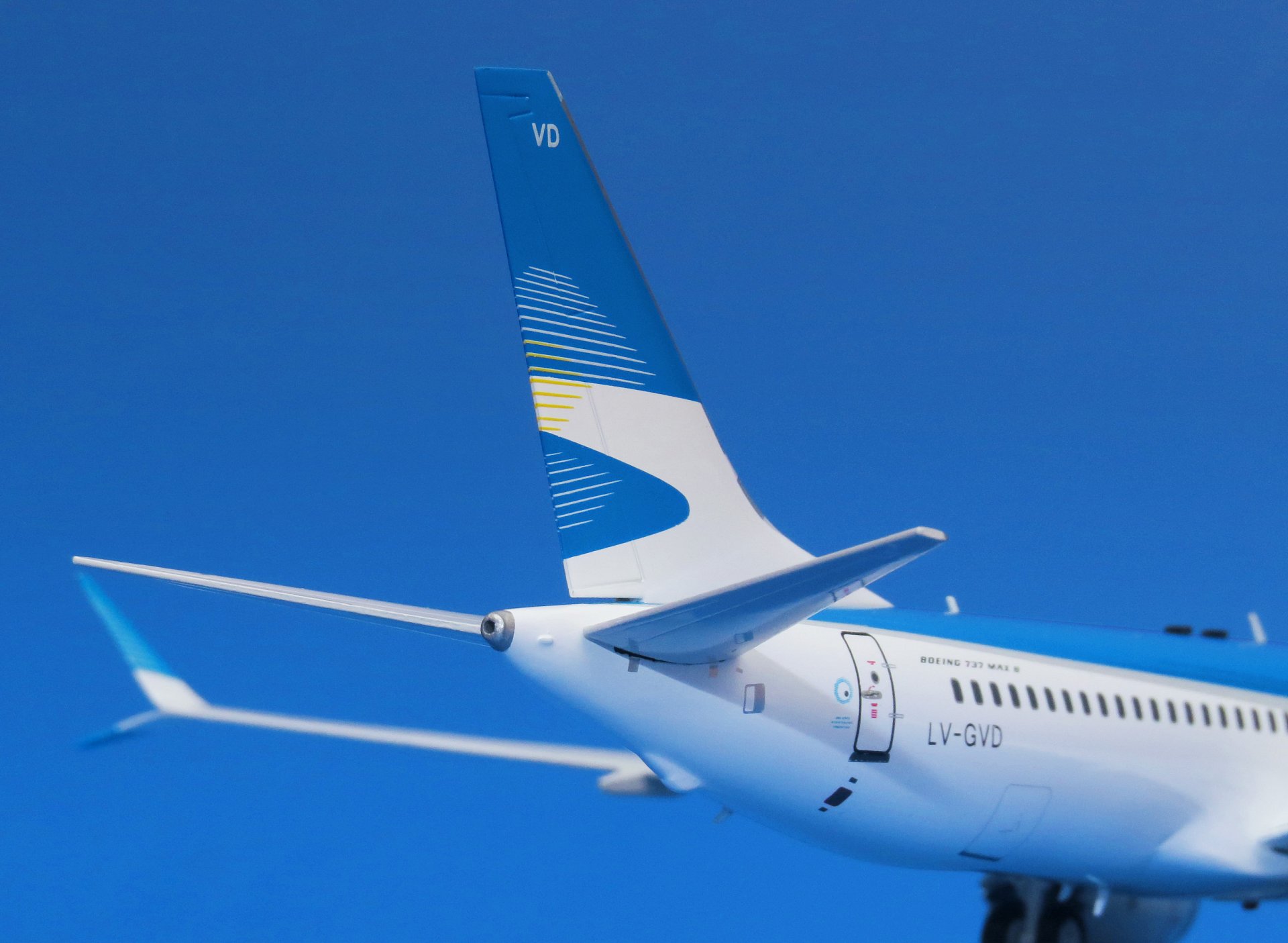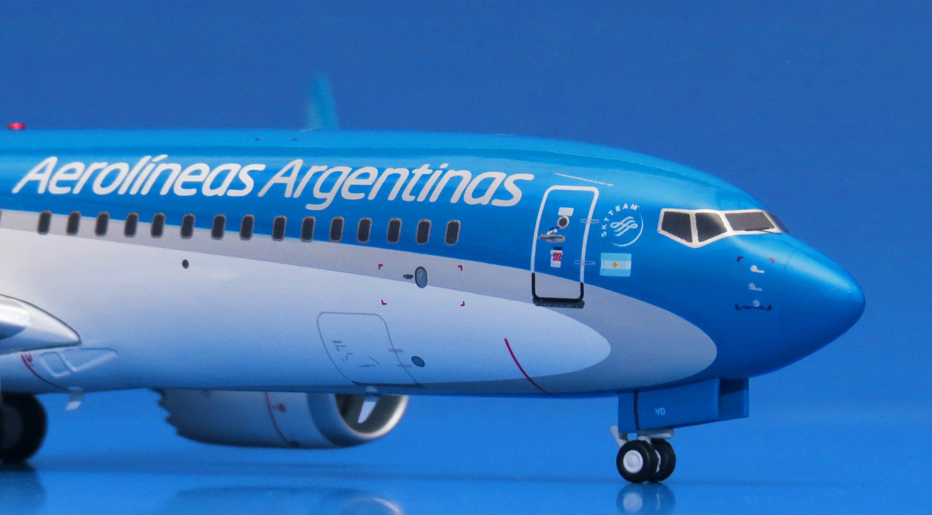 Уважаемые коллекционеры! Представляю вашему вниманию фотообзор одной из моих новых моделей в коллекции — Boeing 737 MAX 8 национального аргентинского авиаперевозчика Aerolineas Argentinas. Авиакомпания была создана в 1949 году в результате слияния четырёх компаний и начала свою деятельность в декабре 1950 года. Aerolineas Argentinas и её бывшая дочерняя компания Austral Lneas Areas (упразднённая в мае 2020) работают из двух аэропортов, расположенных в Буэнос-Айресе, а их (теперь) совместный узкофюзеляжный парк, используемый на внутренних и региональных маршрутах, состоит из Embraer 190, Boeing 737-700, 737-800 и 737 MAX 8, тогда как межконтинентальные и трансокеанские рейсы выполняются на широкофюзеляжных Airbus A330-200. В настоящий момент авиакомпания эксплуатирует 7 самолётов Boeing 737 MAX 8.