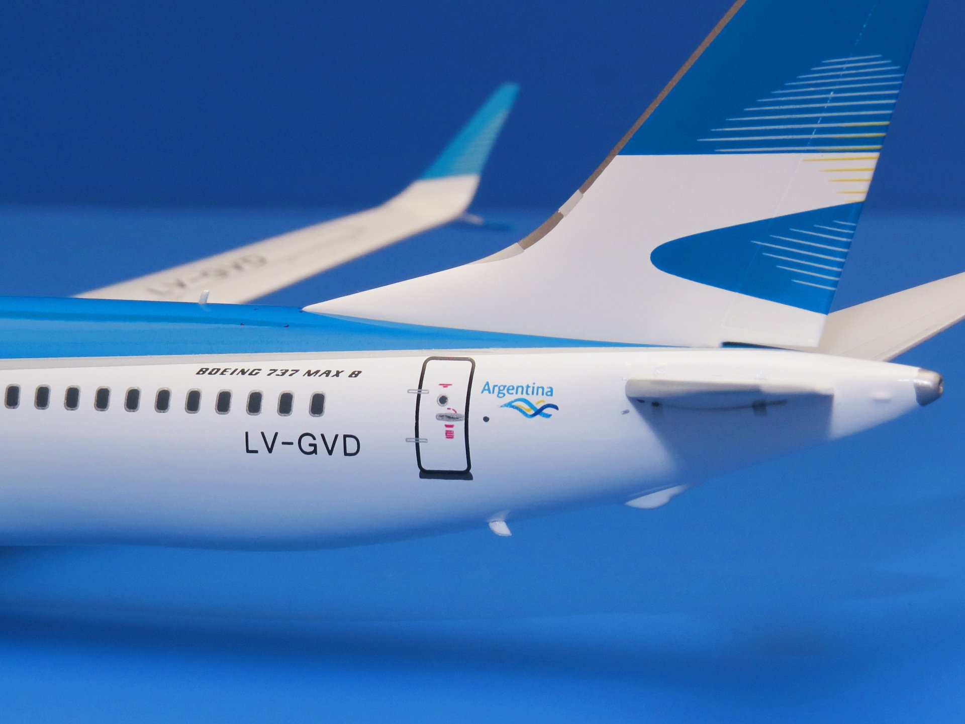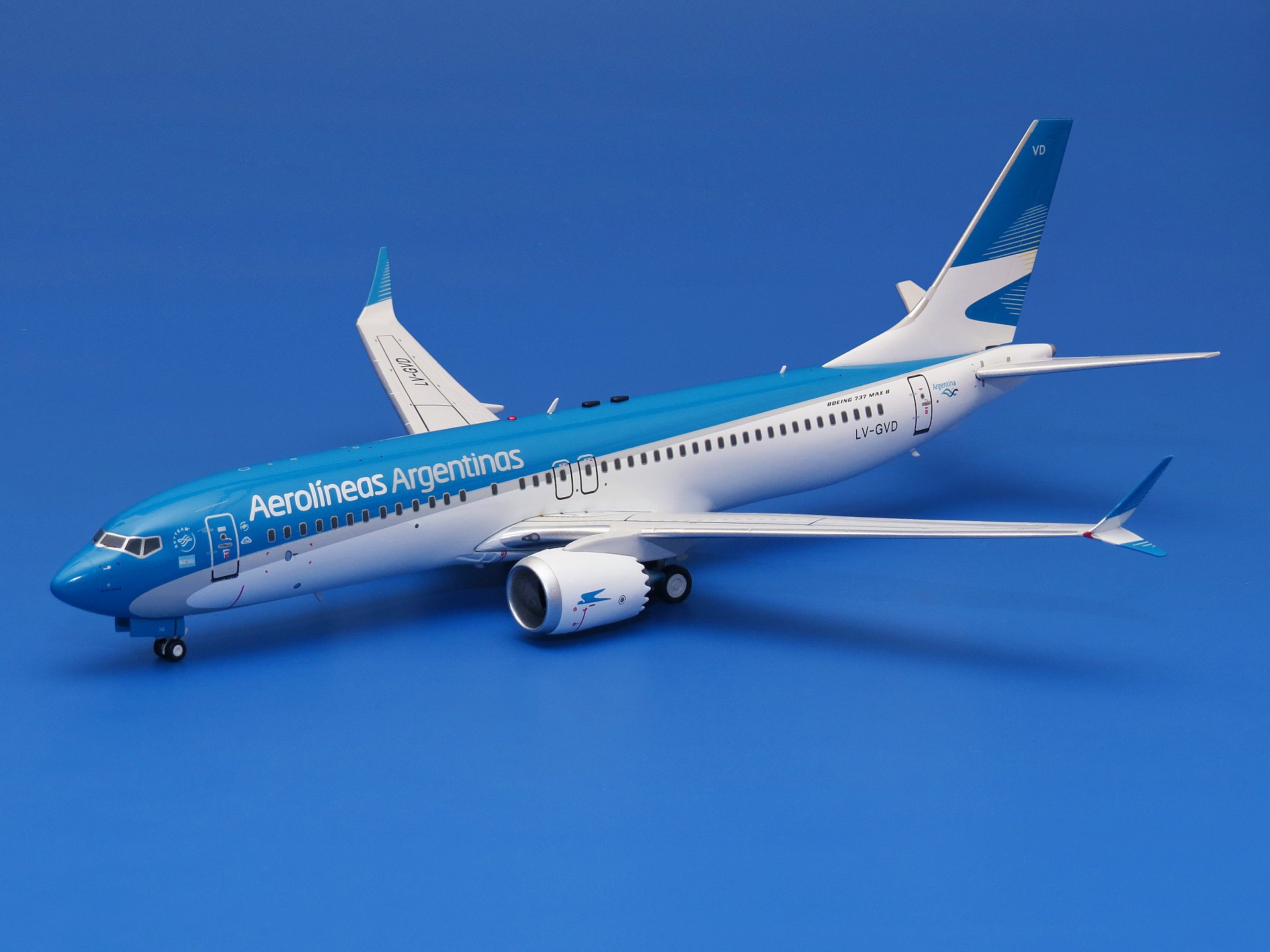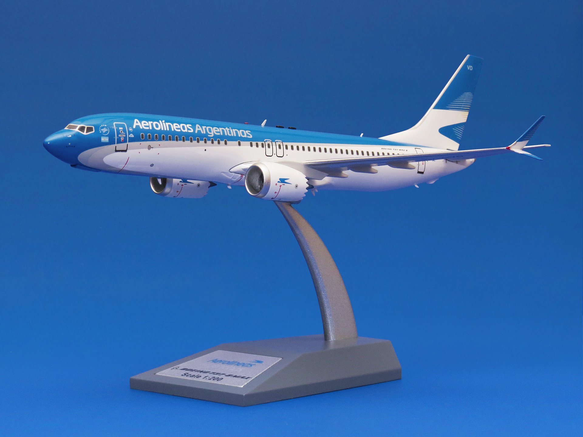 Уважаемые коллекционеры! Представляю вашему вниманию фотообзор одной из моих новых моделей в коллекции — Boeing 737 MAX 8 национального аргентинского авиаперевозчика Aerolineas Argentinas. Авиакомпания была создана в 1949 году в результате слияния четырёх компаний и начала свою деятельность в декабре 1950 года. Aerolineas Argentinas и её бывшая дочерняя компания Austral Lneas Areas (упразднённая в мае 2020) работают из двух аэропортов, расположенных в Буэнос-Айресе, а их (теперь) совместный узкофюзеляжный парк, используемый на внутренних и региональных маршрутах, состоит из Embraer 190, Boeing 737-700, 737-800 и 737 MAX 8, тогда как межконтинентальные и трансокеанские рейсы выполняются на широкофюзеляжных Airbus A330-200. В настоящий момент авиакомпания эксплуатирует 7 самолётов Boeing 737 MAX 8.