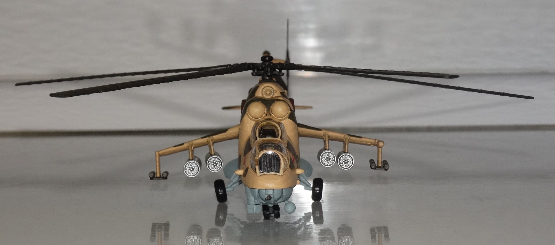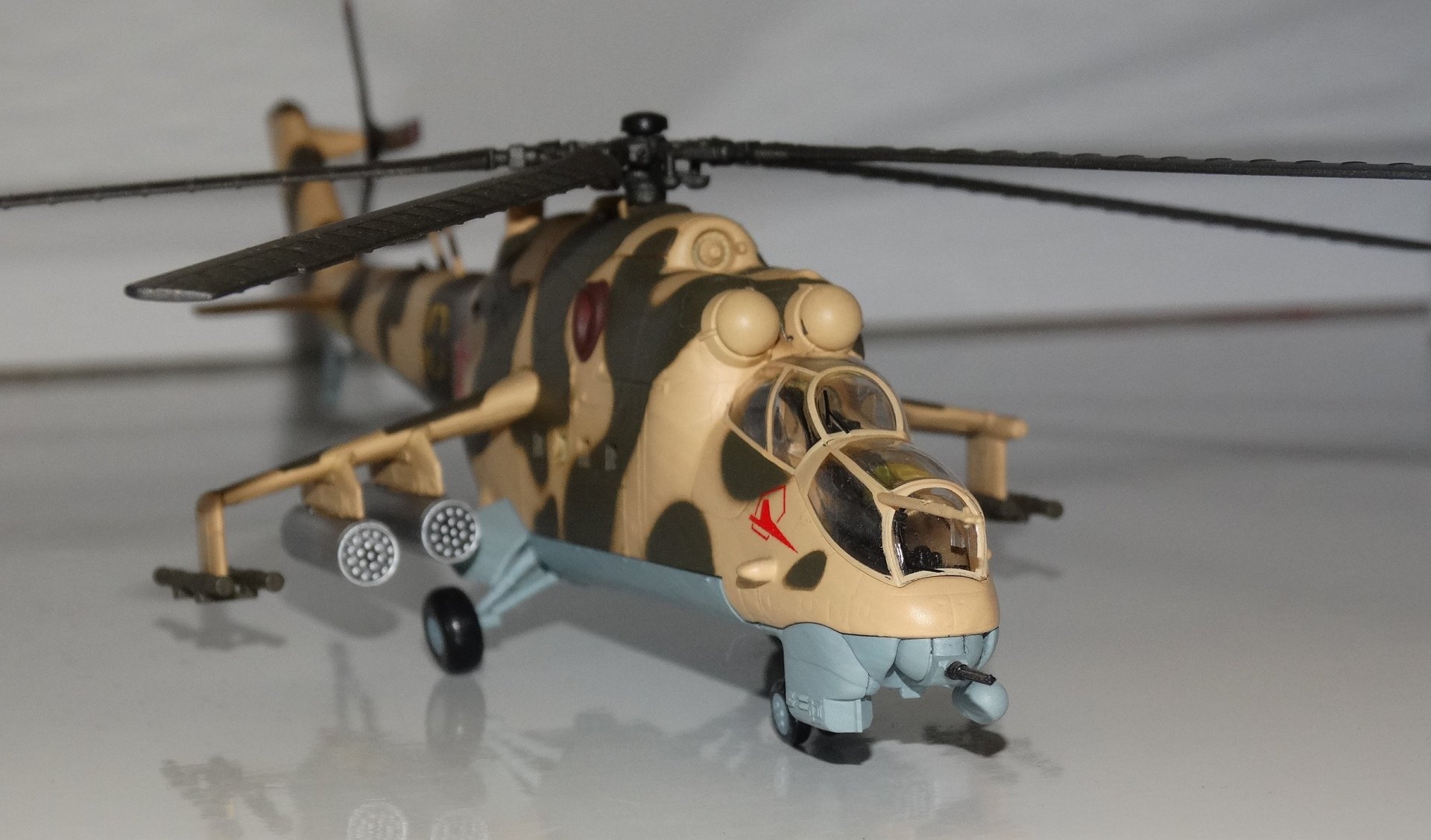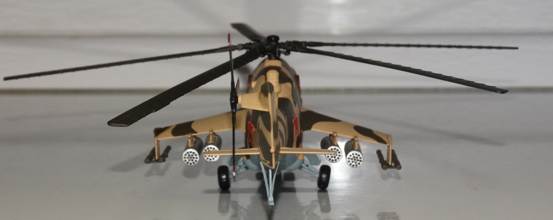 У модели хорошая детализация, имитация расшивки - для данной ценовой категории качество на очень высоком уровне. Этот Ми-24 очень хорошо вписался в мою подборку винтокрылых.