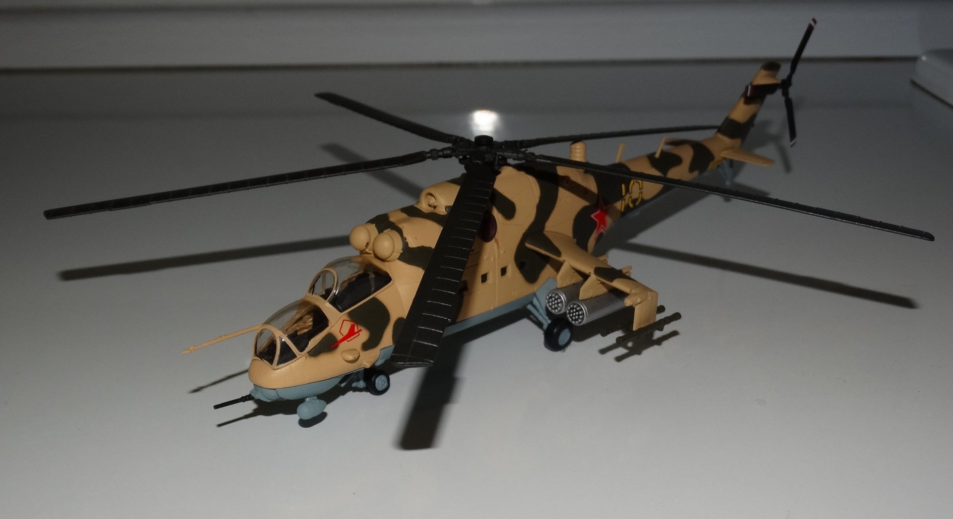 Модель вертолета ударного Ми-24В от популярного производителя журнальных серий "DeAgostini" - ими выпускалась серия "Военные Вертолеты" в масштабе 1/72 и как раз первым номером шел Ми-24В