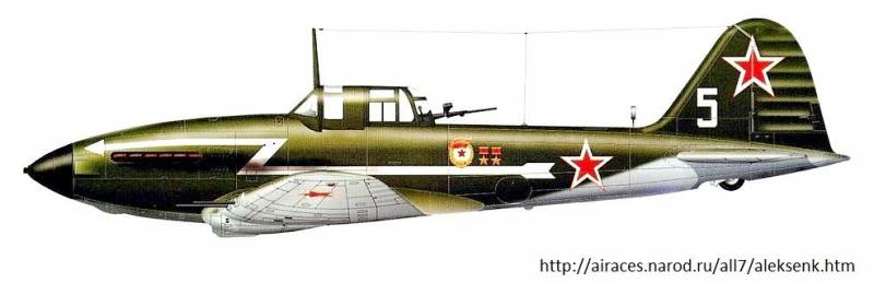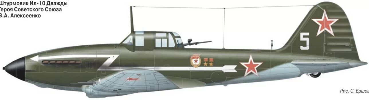 Íà ñàìîëåòå ¹5 "áåëûé" âîåâàë äâàæäû Ãåðîé Ñîâåòñêîãî Ñîþçà, çàìåñòèòåëü êîìàíäèðà 15-ãî Ãâàðäåéñêîãî øòóðìîâîãî àâèàöèîííîãî ïîëêà ãâàðäèè ìàéîð Âëàäèìèð Àâðàìîâè÷ Àëåêñåíêî. Âñåãî â ãîäû âîéíû Â.À. Àëåêñåíêî ñîâåðøèë 292 óñïåøíûõ áîåâûõ âûëåòà. Íà åãî ñ÷åòó äåñÿòêè ñáèòûõ è óíè÷òîæåííûõ íà àýðîäðîìàõ ñàìîë¸òîâ, 33 òàíêà, 118 àâòîìàøèí, 53 æåëåçíîäîðîæíûõ âàãîíà, 85 ïîâîçîê, 15 áðîíåòðàíñïîðò¸ðîâ, 10 ñêëàäîâ ñ áîåïðèïàñàìè, 27 àðòèëëåðèéñêèõ îðóäèé, 54 çåíèòíûõ îðóäèÿ, 12 ìèíîì¸òîâ è ñîòíè óíè÷òîæåííûõ ñîëäàò è îôèöåðîâ ïðîòèâíèêà.