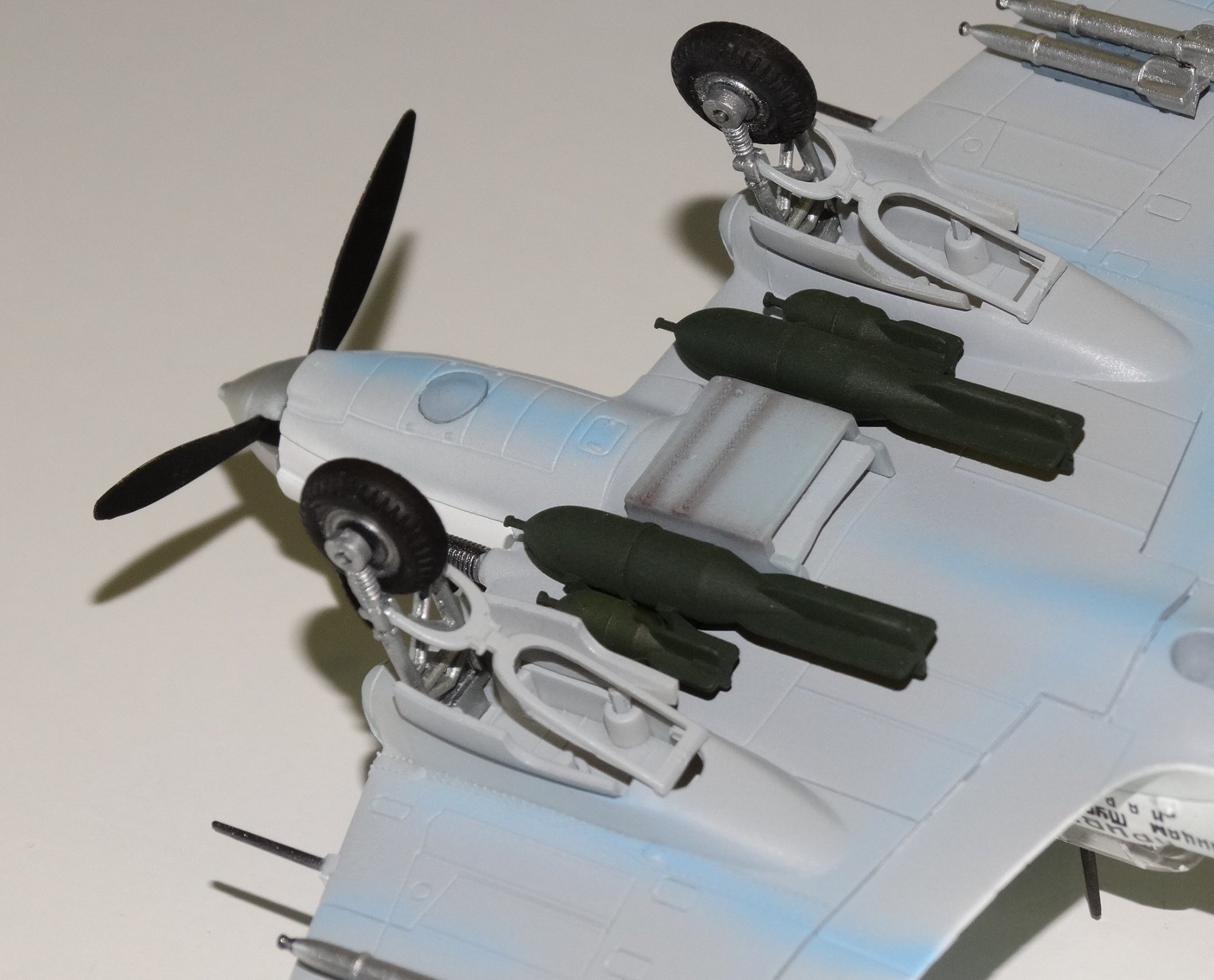 Как видно из вышеприведенных фотографий, у модели неплохая детализация, хорошо выполнена расшивка, достаточно хорошо выполнен пулемет стрелка-радиста, чем не может похвастаться модель Ил-2 от "Easy model", немного смущают стыки плоскостей с фезюляжем, но это совсем не критично.
