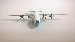 Прежде, чем описать саму модель, хочу поведать о прототипе этой модели - Ан-22 «Антей». Произведён он был в Советском Союзе в 1965-м году и дали ему имя Антей из греческой мифологии — великан, сын Посейдона (или Геи, или Посейдона и Геи), который получил необоримую силу от соприкосновения с матерью Геей — землёй. И призван он (самолёт) был на дальние расстояния перевозить большие грузы, не исключая военную технику и десантные группы. На то время Ан-22 стал самым большим в мире турбовинтовым самолётом. И прозвали его по классификации НАТО Cock — «Петух». Видимо, из-за своеобразного «носа» самолета. А первый полет он совершил 27 февраля 1965 года с аэродрома Киевского авиазавода Святошино на военный аэродром в г. Узин Киевской области. И уже 15 июня 1965 года на авиасалоне в Ле Бурже его увидел весь мир.