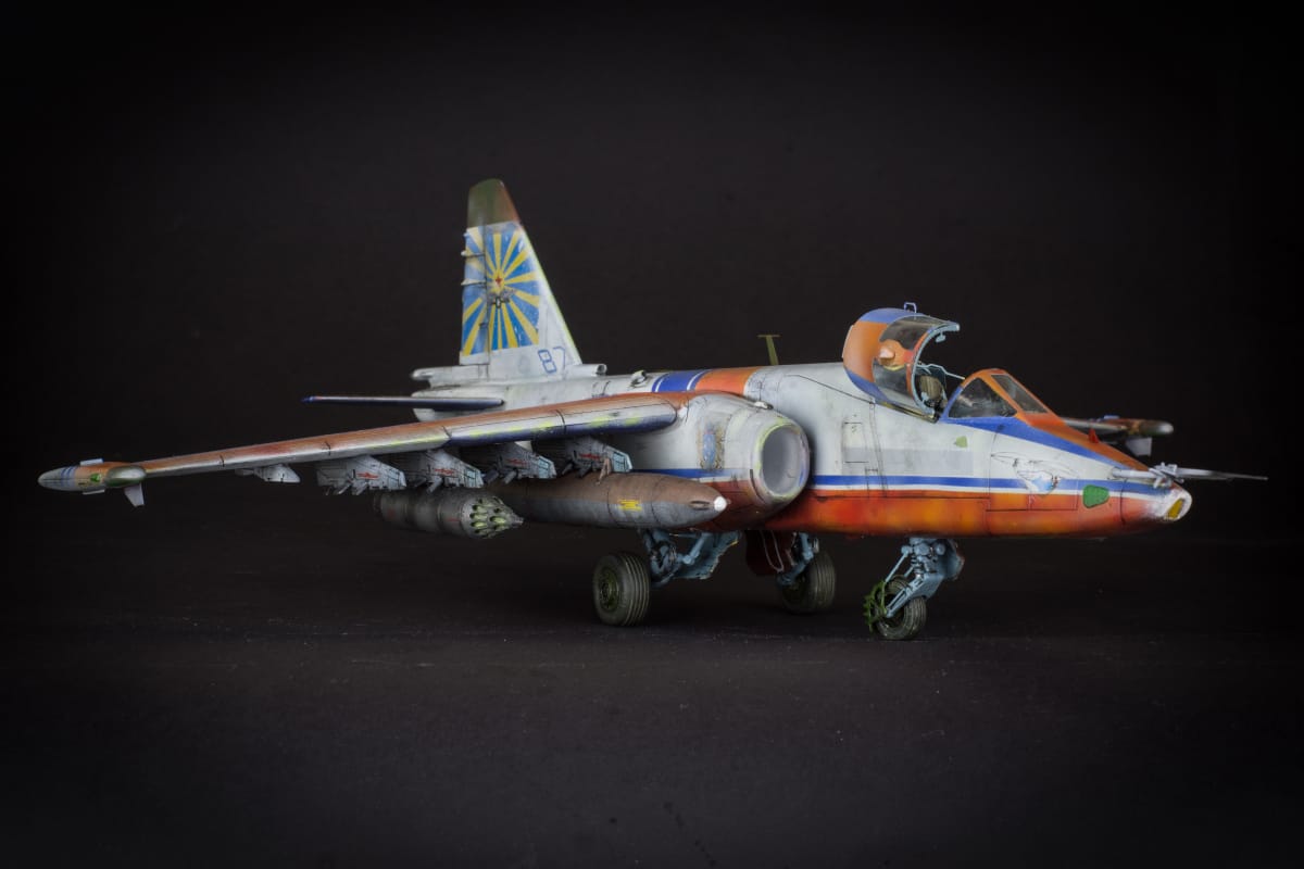 Модель воспроизводит су-25 на момент 4 августа 1988 г., когда "грач" Руцкого был сбит пакистанским F-16, после чего советский летчик катапультировался и попал в плен.