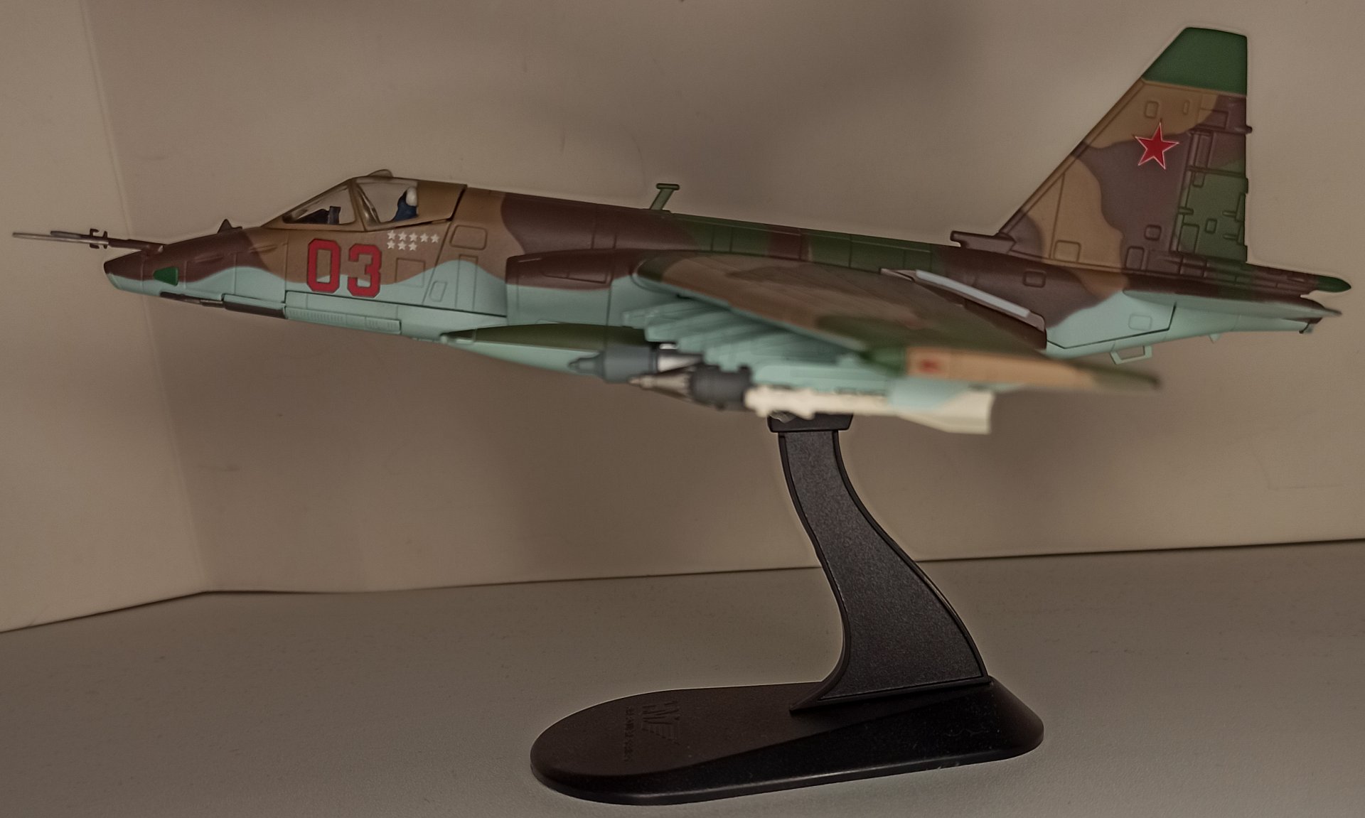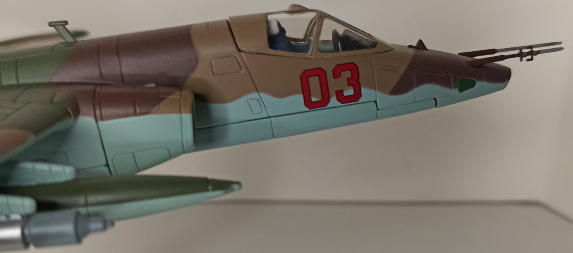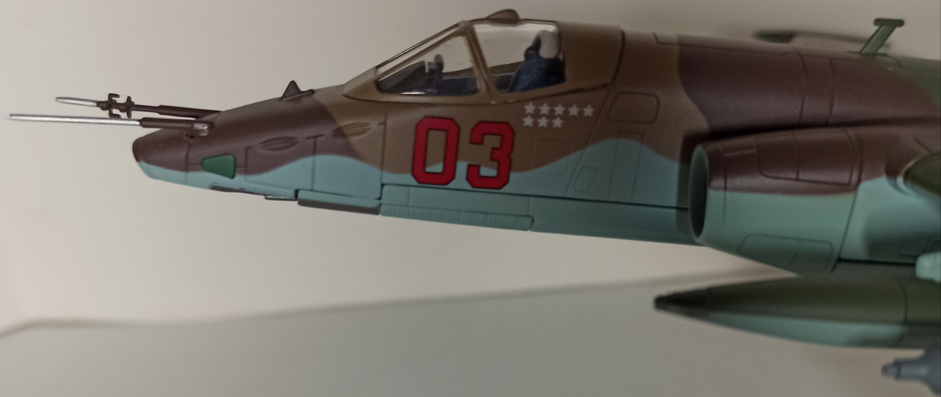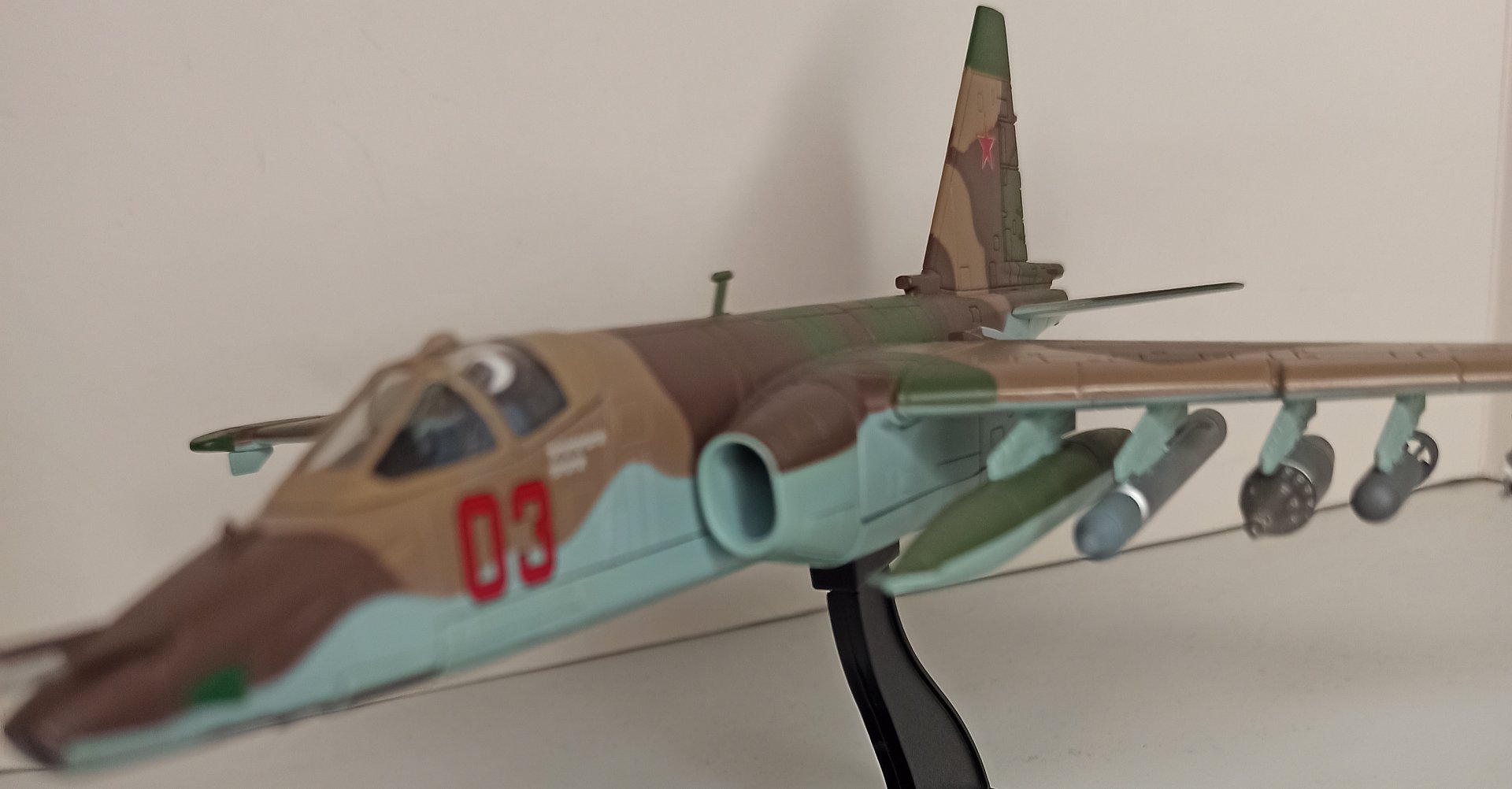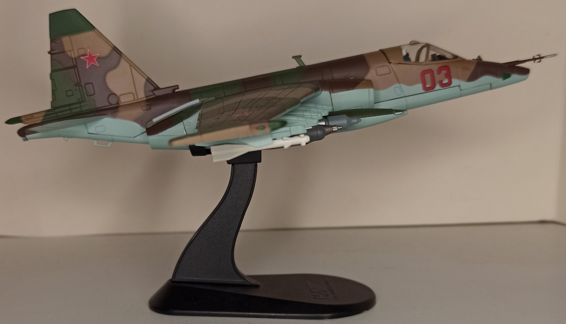 Подводя итог, что можно сказать?Отличная модель су-25 до модернизаций, предложен интересный вариант окраски с историей. Качество на высоком уровне, намного выше, чем у altaya или перепака той же модели от herpa, модель более точная и приятная при сборке. Пожалуй, единственный минус, это отсутствие задумки сделать пилоны с вооружением пустыми, так как с полной нагрузкой на все пилоны практически никогда "грачи" не вылетали. А в остальном, модель прекрасная. Хочется надеяться, что хобби мастер догадается сделать су-25утг, пилотажников из "небесных гусар", а также российские самолёты на другие конфликты конца 90-х - начала 2000-х и текущее противостояние.