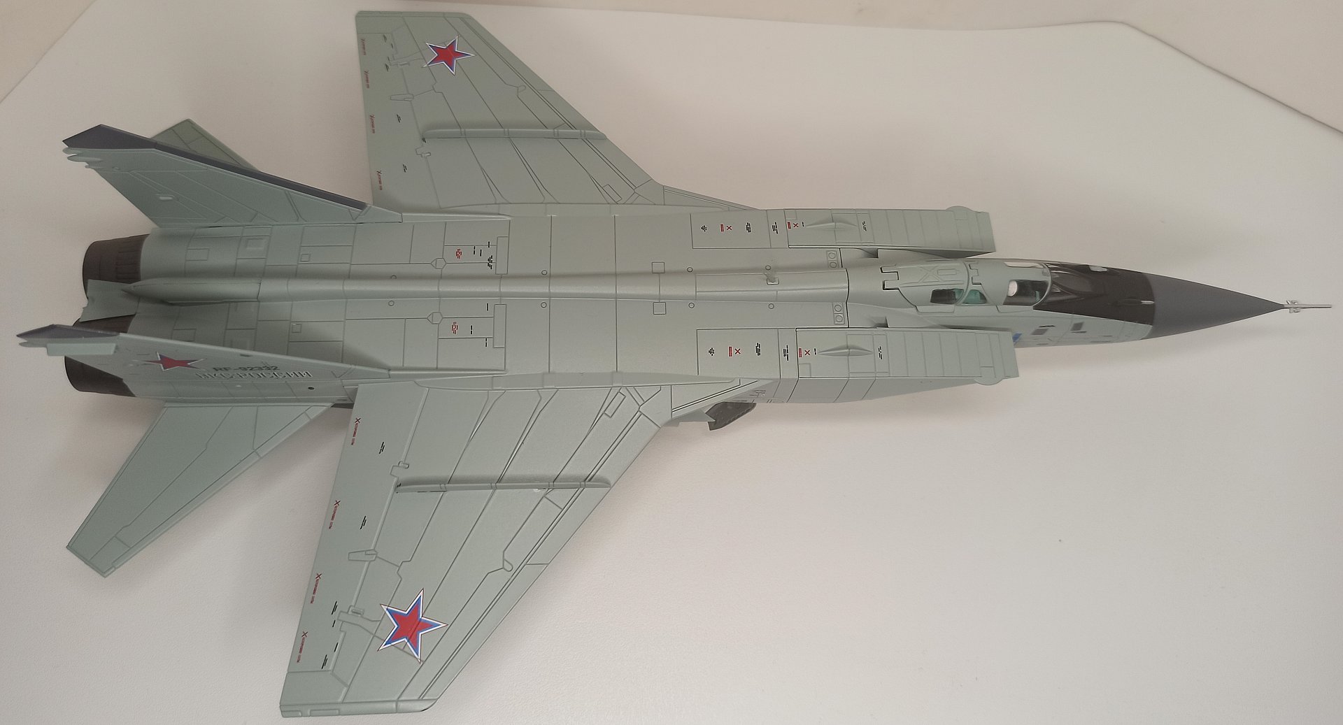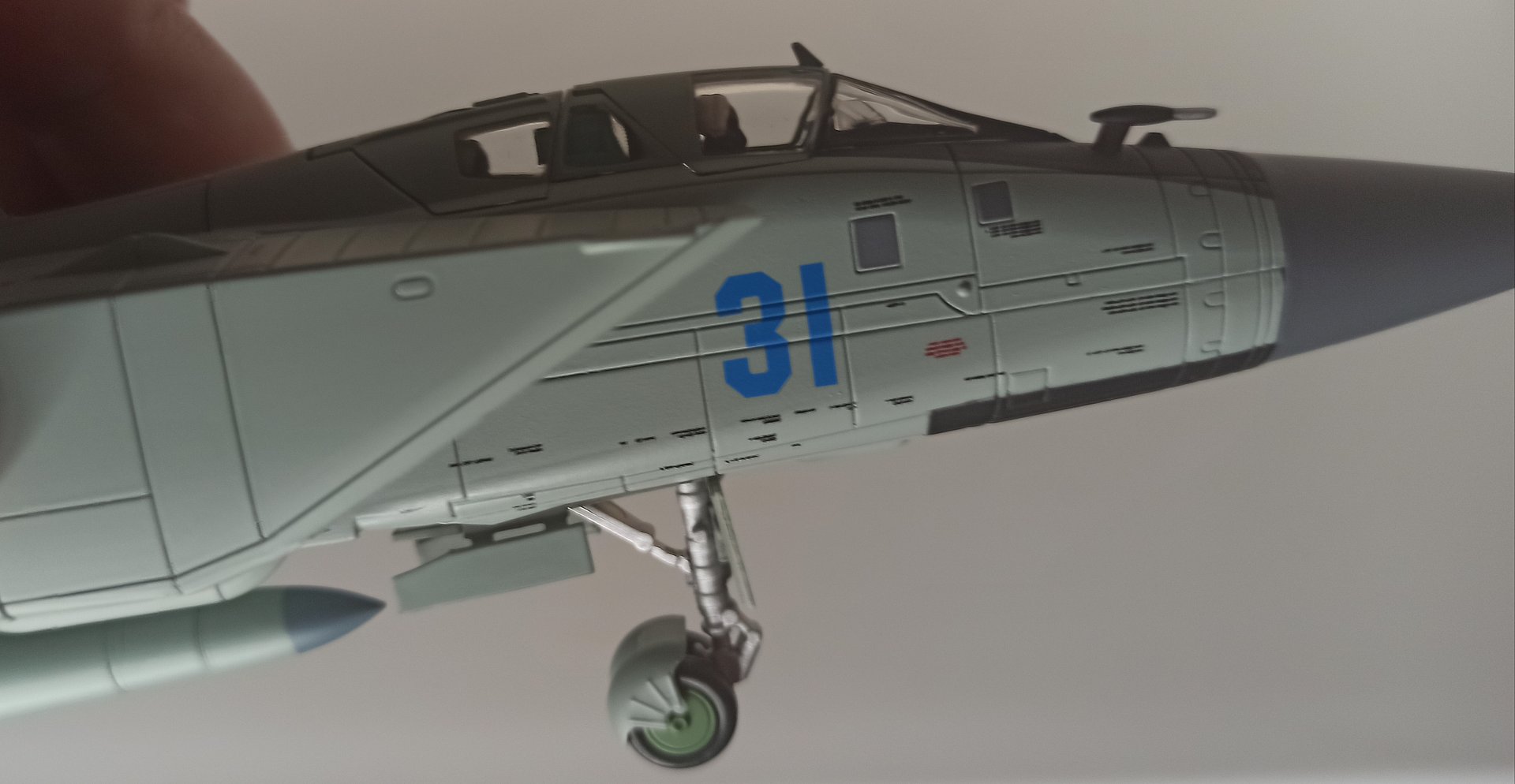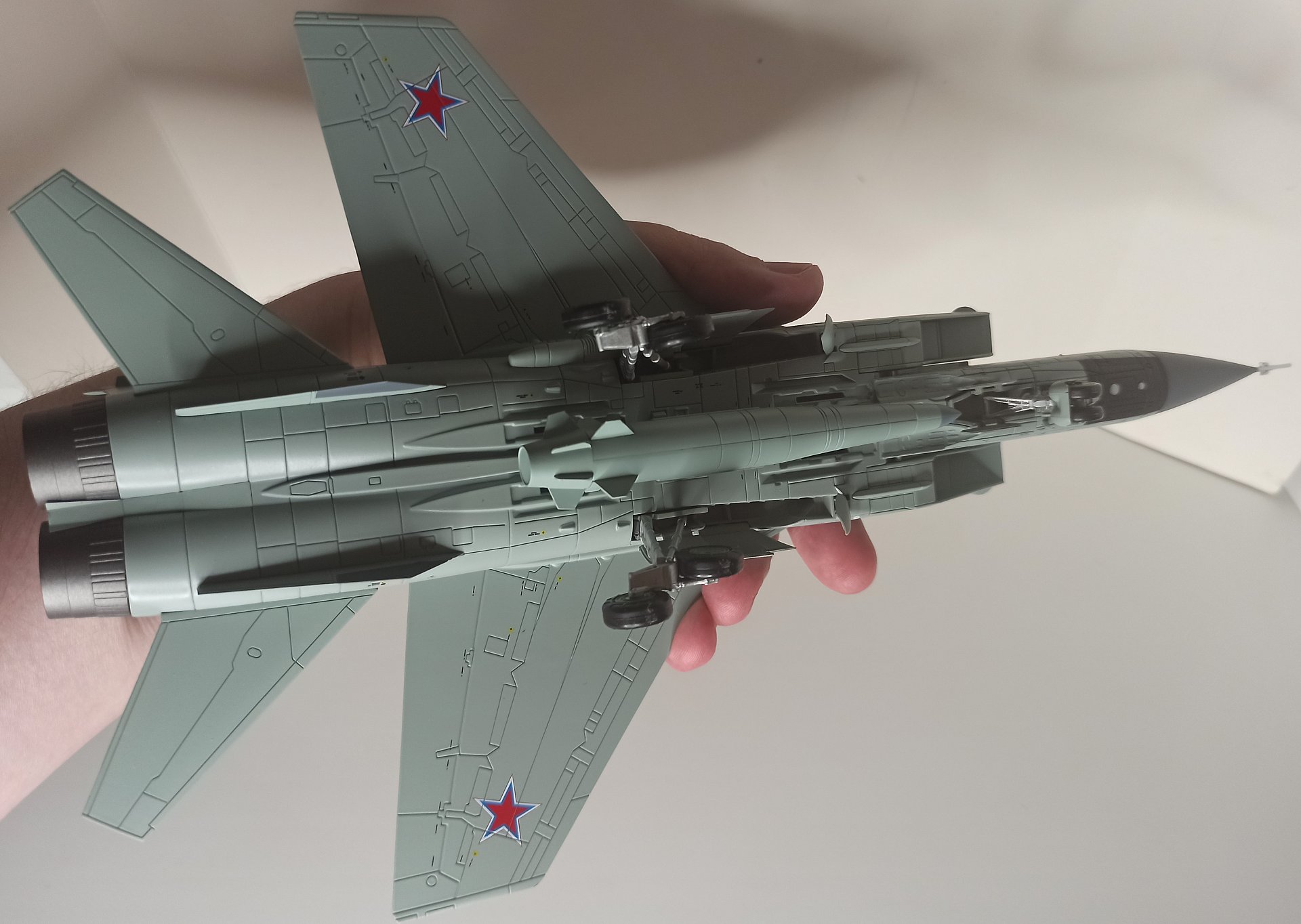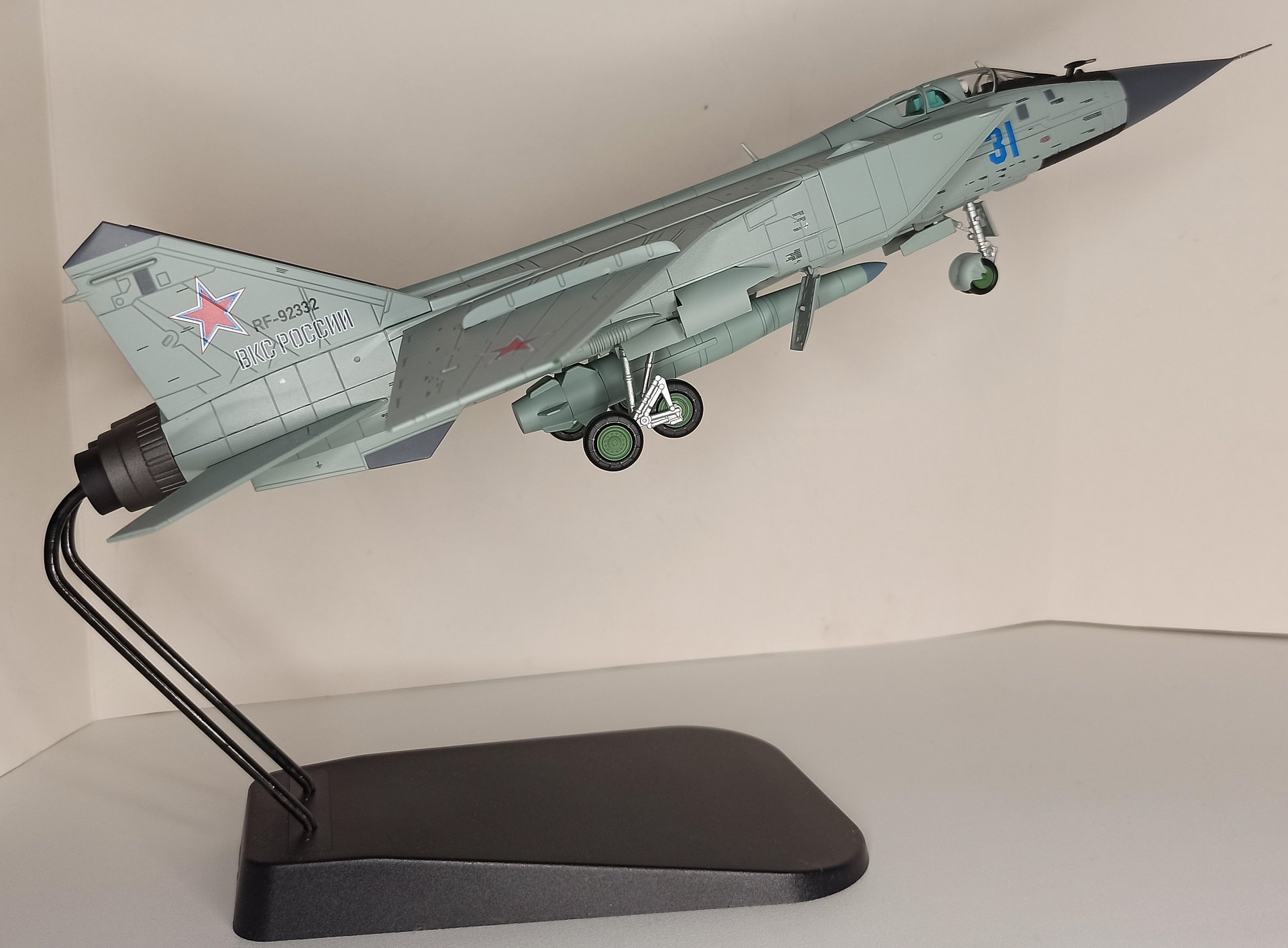 Первая модель МиГ-31 от хобби мастера. Во многом долгожданная, так как среди коллекционных моделей 31-го у нас были altaya в 2 вариантах окраски (борт 903 с авиасалона и борт 08 "Борис Сафонов") и китайская реплика алтаи, копирующая 08 с толстым ПВД (успел себе и такую взять). Плюс ещё первая модель была сразу с "кинжалом". Но обо всем по порядку.