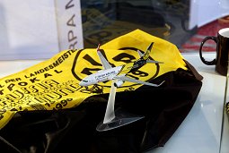Боинг-737-800 в масштабе 1:200 с символикой футбольного клуба "Боруссия" эффектно демонстрируется на фоне других атрибутов знаменитой команды из Дортмунда.