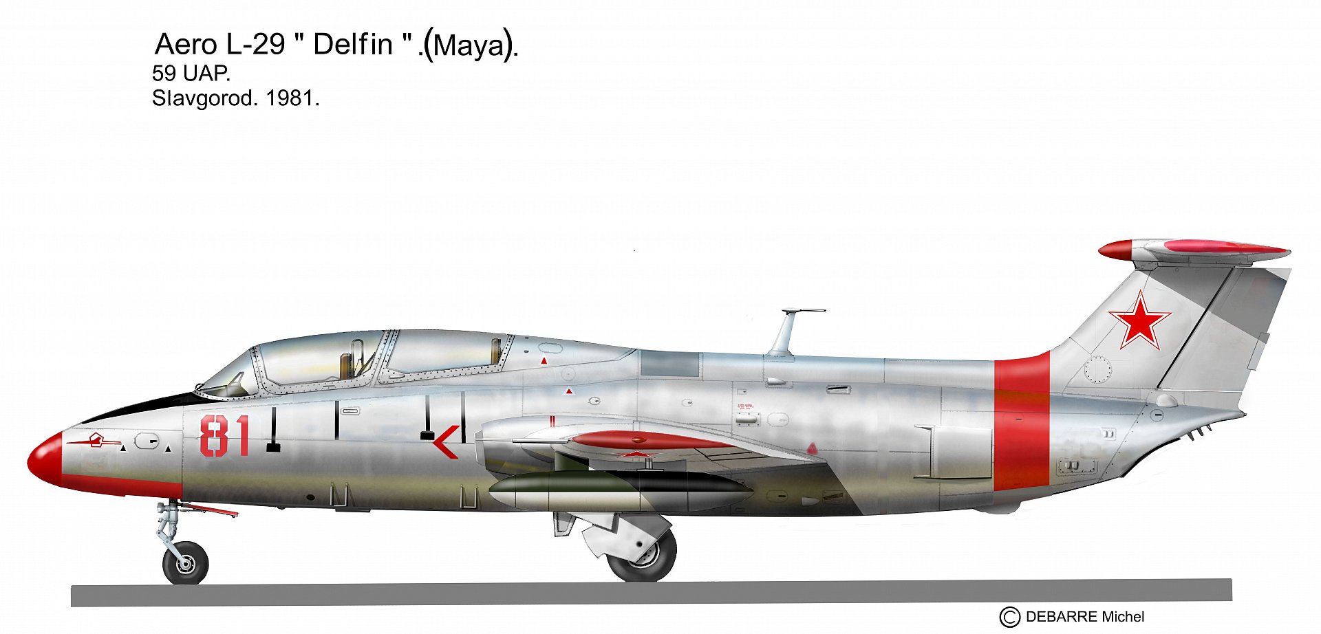 Модель чешского Aero L-29 «Дельфин» № 81, 59-й учебный полк, авиабаза Славгород, СССР, 1980-е годы (металл 1:72). Артикул: MLCZ-72-03-02