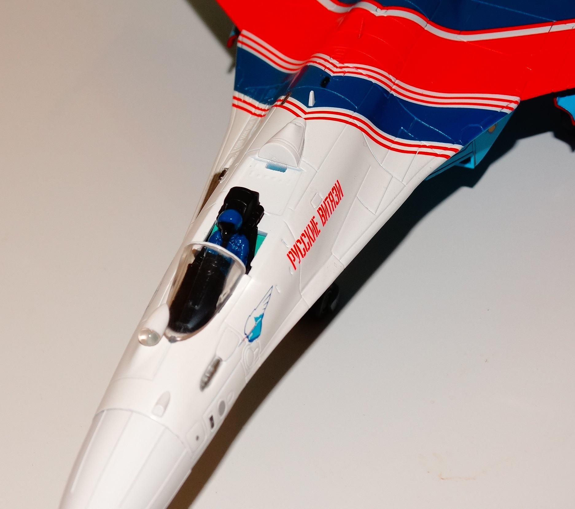 Модель комплектуется съемной фигуркой пилота, а также фонарем "в открытом положении", дополнительными соплами на двигатели с измененным вектором тяги: