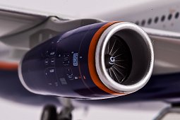 Высочайшую степень детализации имеют и двигатели. Вращающиеся лопатки с тонированными серебрянкой ребрами, спираль на конусе, сопла с задней стороны турбины, множество мелочевки, имитирующей лючки и крышки. Даже логотип двигателестроительной компании "Роллс-Ройс" присутствует на корпусе!