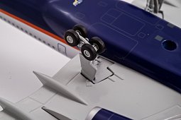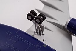 На высоком технологическом уровне исполнено шасси самолета. Кроме стандартных для коллекционных моделей 200-го масштаба опций в виде крутящихся колес и резиновых покрышек, на модели также поворачивается передняя стойка, отклоняются колесные тележки основных шасси. Да и сами стойки сделаны с высокой достоверностью и проработкой деталей.