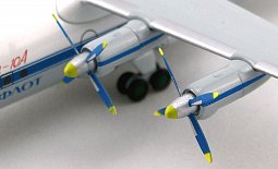 В модели самолета Ан-10 вращаются винты всех 4-х двигателей. Кроме того, на винтах краской имитированы обогреватели противообледенительной системы, что позволяет двигателям выглядеть более реалистично.