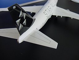 И, наконец, хвост. Окраска выполнена прекрасно. Посмотрите на стабилизаторы - напечатаны даже мелкие технические надписи! Показана также выходное отверстие ВСУ. Форма киля и стабилизаторов правильная, в местах стыков с фюзеляжем нет даже малейших щелей. Это именно то, что ожидают от каждой модели коллекционеры!