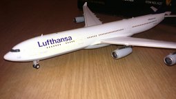 В обзоре описывается металлическая модель самолета Airbus A340-300 немецкой авиакомпании Lufthansa.