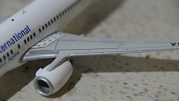 Желающие познакомиться поближе с самолетом, с которого сделана копия, могут посмотреть эффектное видео посадки лайнера UR-PSA. Кстати, обратите внимание на внешние детали самолета (геометрию, надписи, внешние антенны, сигнальные огни).