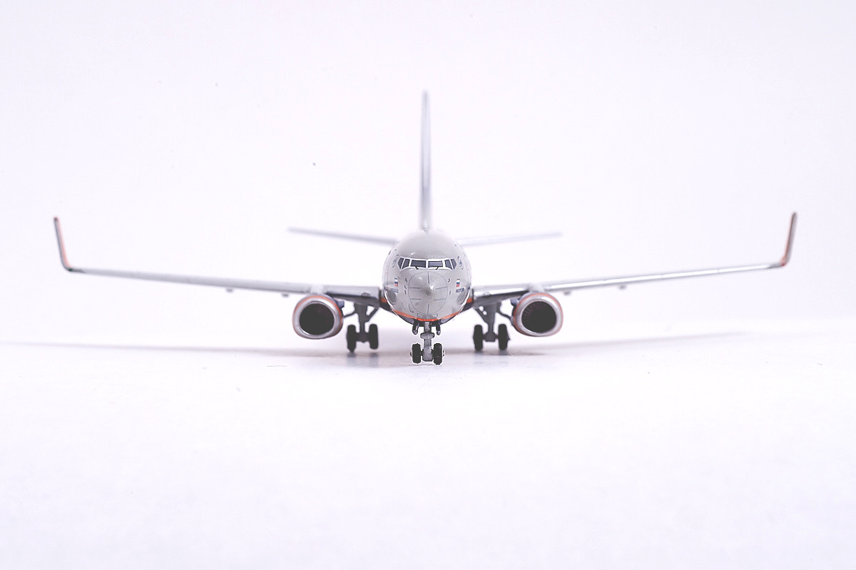 Копия Боинга-737-800 в масштабе 1:400 создана компанией NG Model совсем недавно, всего несколько лет назад. Эта модель, наверное, самая свежая из всех имеющихся на рынке 737-х. Поэтому, геометрически модель очень схожа с оригинальным самолетом.