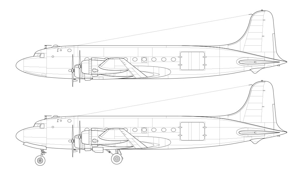 Несколько слов и про конкретный авиалайнер с бортовым номером N45346, который стал прототипом для модели "Херпы". Этот самолет был построен во время войны для ВВС США как военно-транспортный C-54E-15-DO (серийный номер 44-9126). В 1945 году многие транспортники Дугласа (DC-3 и DC-4) стали переоборудовать в пассажирские авиалайнеры. И борт 44-9126 стал вторым C-54, переоборудованным в пассажирский DC-4.