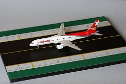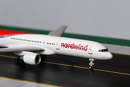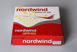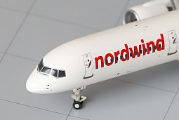 Российская авиакомпания "Nordwind Airlines" (Северный ветер) была образована в 2008 году и за истекшие 5 лет стала одной из ведущих российских авиакомпаний. Главный вид деятельности перевозчика - выполнение чартерных рейсов на популярные мировые курорты из многих городов России. В первые годы деятельности основным самолетом авиакомпании был Boeing 757-200. Именно модель этого авиалайнера в масштабе 1:200 выпустила в ноябре 2013 года гонконгская фирма "JC Wings".