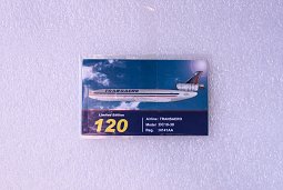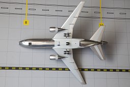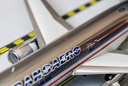 Резюме: основное достоинство модели - это яркий толстый полированный до зеркала фюзеляж. Благодарю нему модель смотрится очень ярко и, безусловно, будет выделяться в коллекции. Ну а для любителей истории модель будет интересна тем, что представляет собой копию первого дальнемагистрального самолета "Трансаэро", сыгравшего важную веху в становлении авиакомпании.