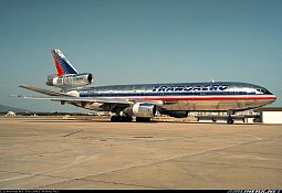Широкофюзеляжный самолет Douglas DC-10-30 (Дуглас ДС-10-30) был одним из самых популярных дальнемагистральных лайнеров конце 20-го века. Молодая авиакомпания "Трансаэро" - один из первых в России эксплуатантов зарубежной техники, в 1996 году выбрала этот самолет для расширения своего флота. Пришедший из парка американского перевозчика "American Airlines", самолет с бортовым номером N141AA сохранил свою предшествующую ливрею из полированного металла. Только на фюзеляж и хвостовое оперение были добавлены логотипы "Трансаэро".