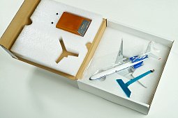 Модель самолёта упакована вместе с разобранной подставкой в пенополиэтилен для сохранности её при транспортировке и в картонную коробку.
