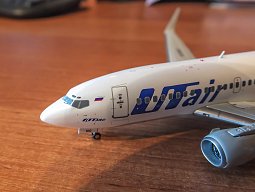 В обзоре описывается модель цельнометаллическая модель самолета Боинг-737-500 с винглетами из флота авиакомпании UTair (ЮТэйр). Модель выпущена осенью 2013 года фирмой JC Wings с артикулом XX2589 и представляет уменьшенную в 200 раз копию реального авиалайнера с бортовым номером VQ-BAD.
