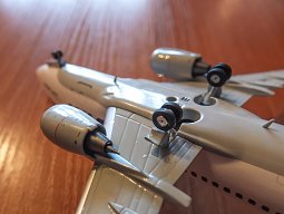 Первая модель из тех, которые я видел, у которой бортовой маяк сверху на фюзеляже сделан не просто пятном красной краски, а выпуклой капелькой прозрачного красного лака - гораздо более реалистично:
