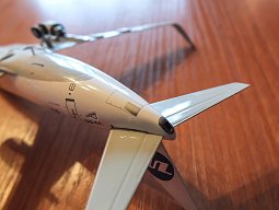 Если коротко, то модель идеальна, и сделана с заметно большим изяществом, чем предыдущий претендент на звание "лучшей модели" - тот же 737-500 Аэрофлот-Норд от Aviation 200. На модели воспроизведены все мыслимые в данном масштабе технические надписи и маркировки, но это почему-то не создает впечатления "ряби в глазах", как в случае с моделью Аэрофлот-Норд - то ли надписи тоньше напечатаны, то ли еще по какой-то причине.