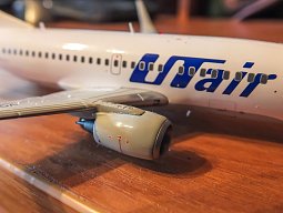 Данный борт с серийным номером 27331 был построен в сентябре 1994 г. и сразу же пополнил флот американской компании Continental, где и летал до октября 2008 г. Недолгое время находился на хранении, получил винглеты, и в феврале 2009 г. пополнил парк ЮТэйр, где благополучно и летает до сих пор. Всего лишь вторая модель самолетов ЮТэйр в 200-м масштабе: первой моделью был вертолет Ми-8 в "попугайской" раскраске, потом Ту-154М, и теперь этот 737-ой.