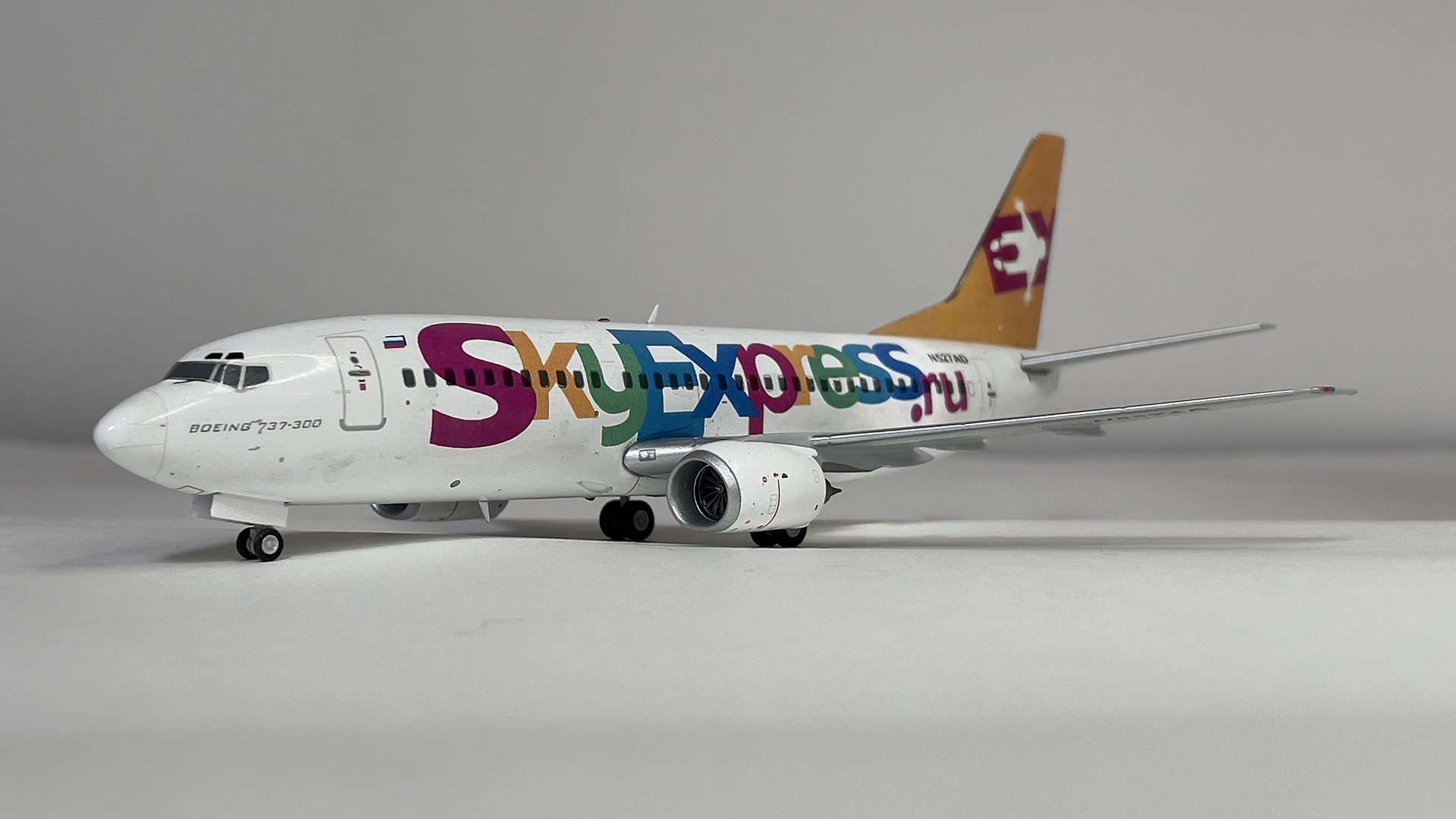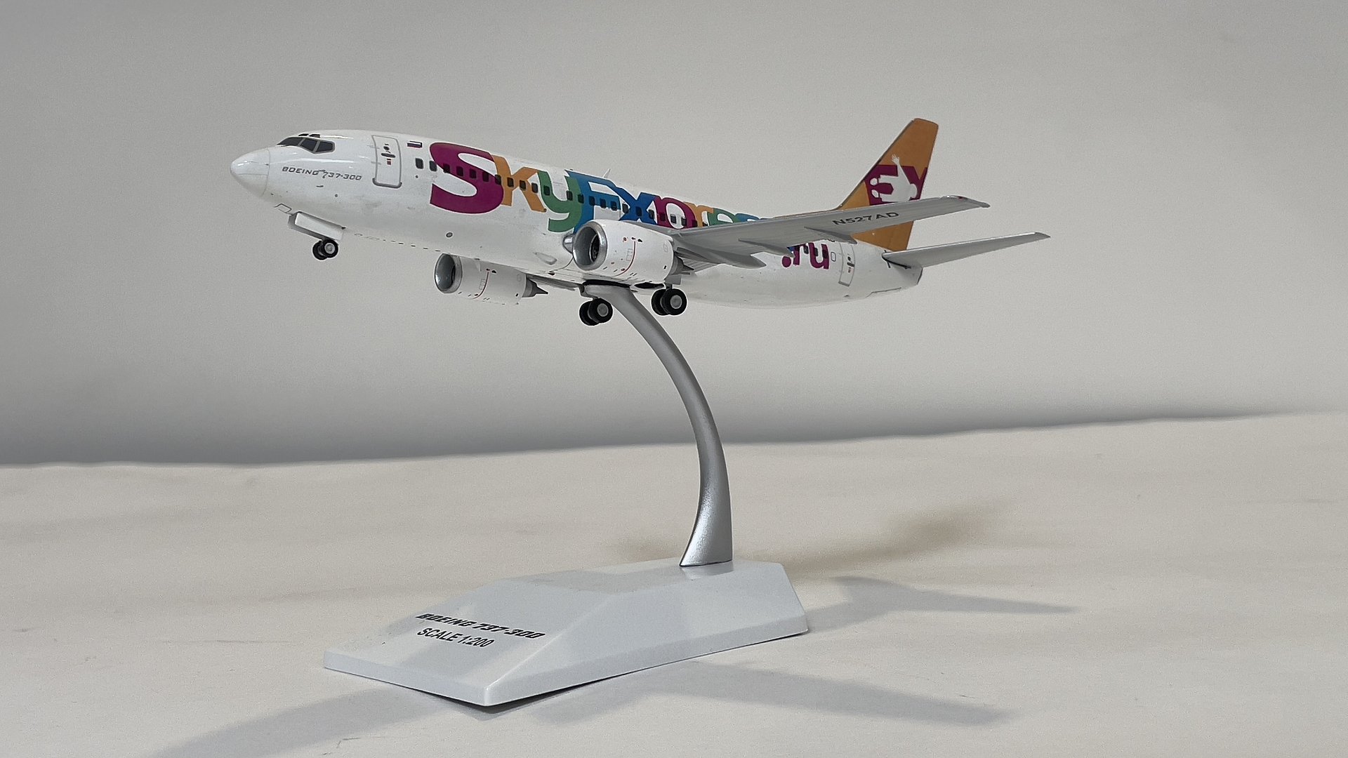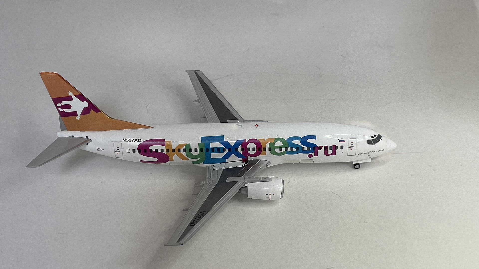 Представляю вам модель самолета Boeing 737-300 российской авиакомпании и первого лоукостера Sky Express в масштабе 1/200 от AviaModel Club. Я не задумываясь приобрел эту модель в интернет магазине "Минилайнер" потому как эта модель объединяет меня и реальный самолет на котором я работал пилотом в этой авиакомпании в период с 2007 года по 2009год. Модель представлена с бортовым номером американской регистрации N527AD присвоенным на начало работы в авиакомпании WFBN (как я понял компания, работавшая на один из американских банков). После распада этой авиакомпании самолет 1986 года выпуска был продан в лизинговую компанию, у которой Sky Express приобрели в лизинг вышеупомянутый самолет, где его и перекрасили в ливрею авиакомпании. Самолет оставался в Майами с российской ливреей и американской регистрацией, пока его не перегнали в Россию.