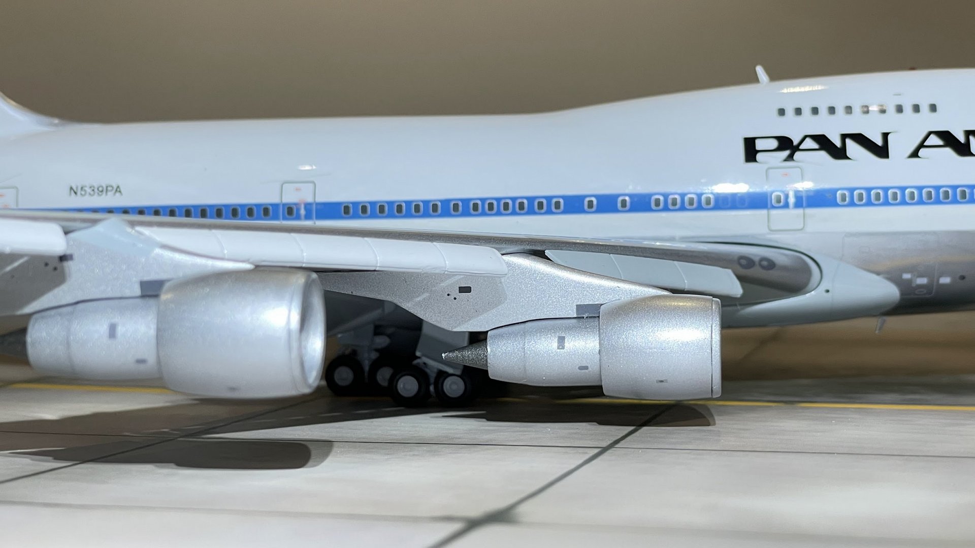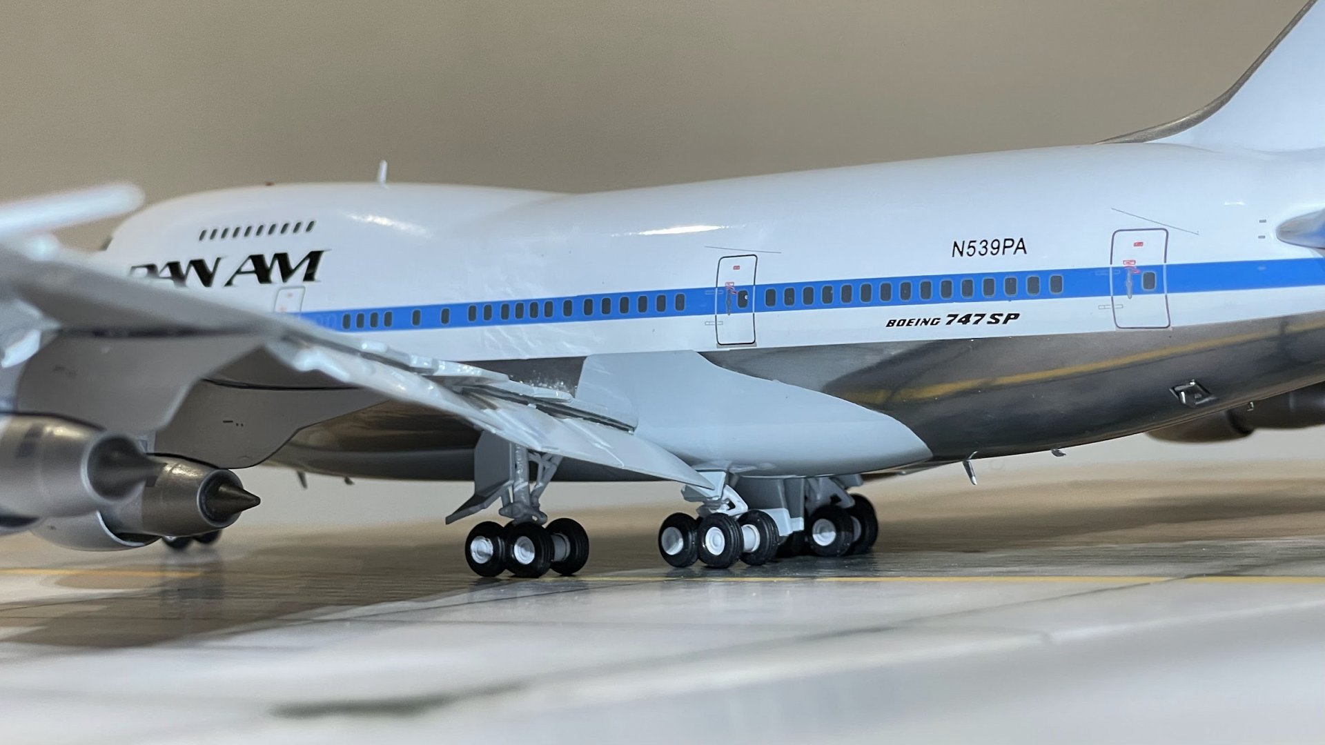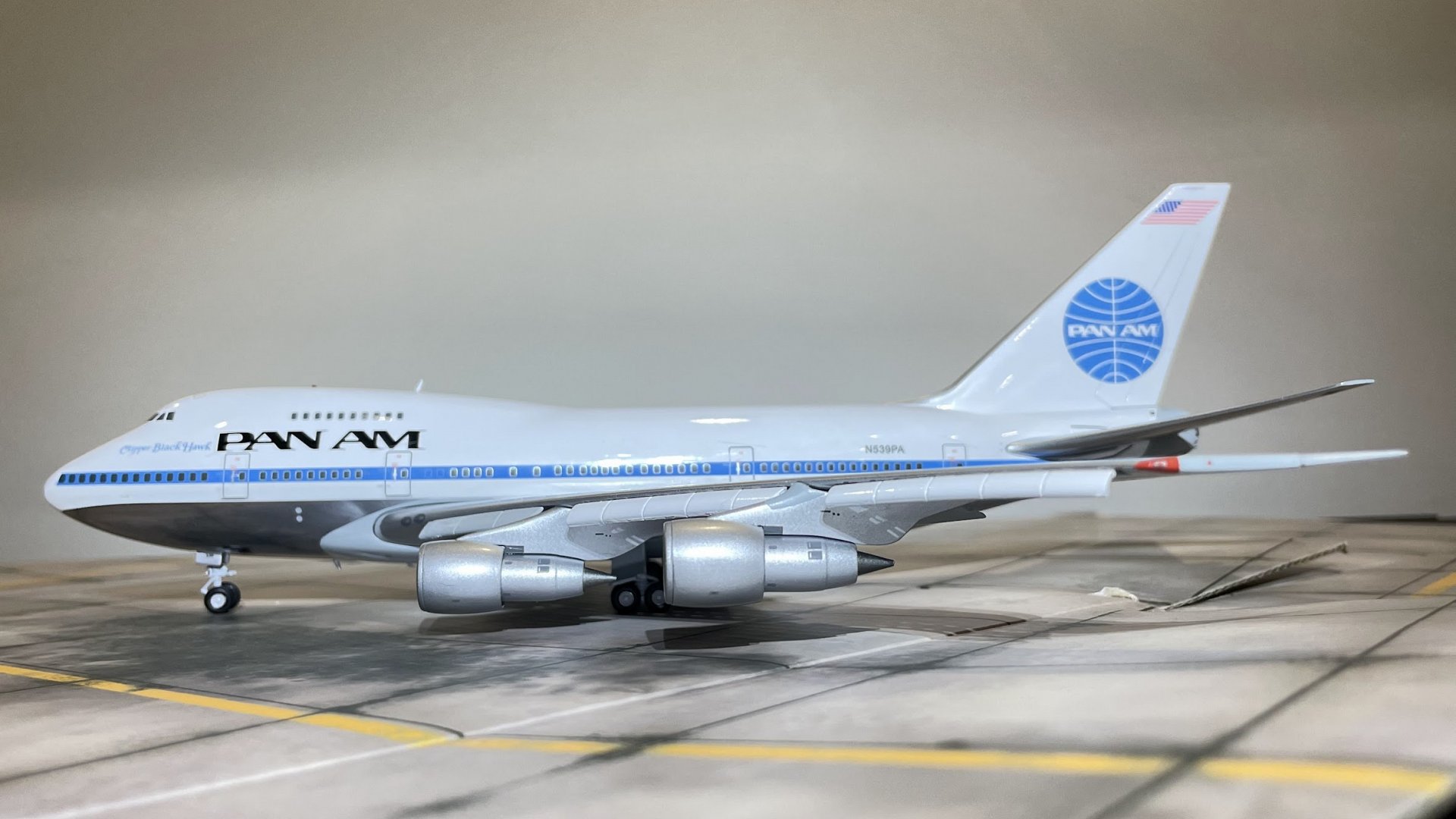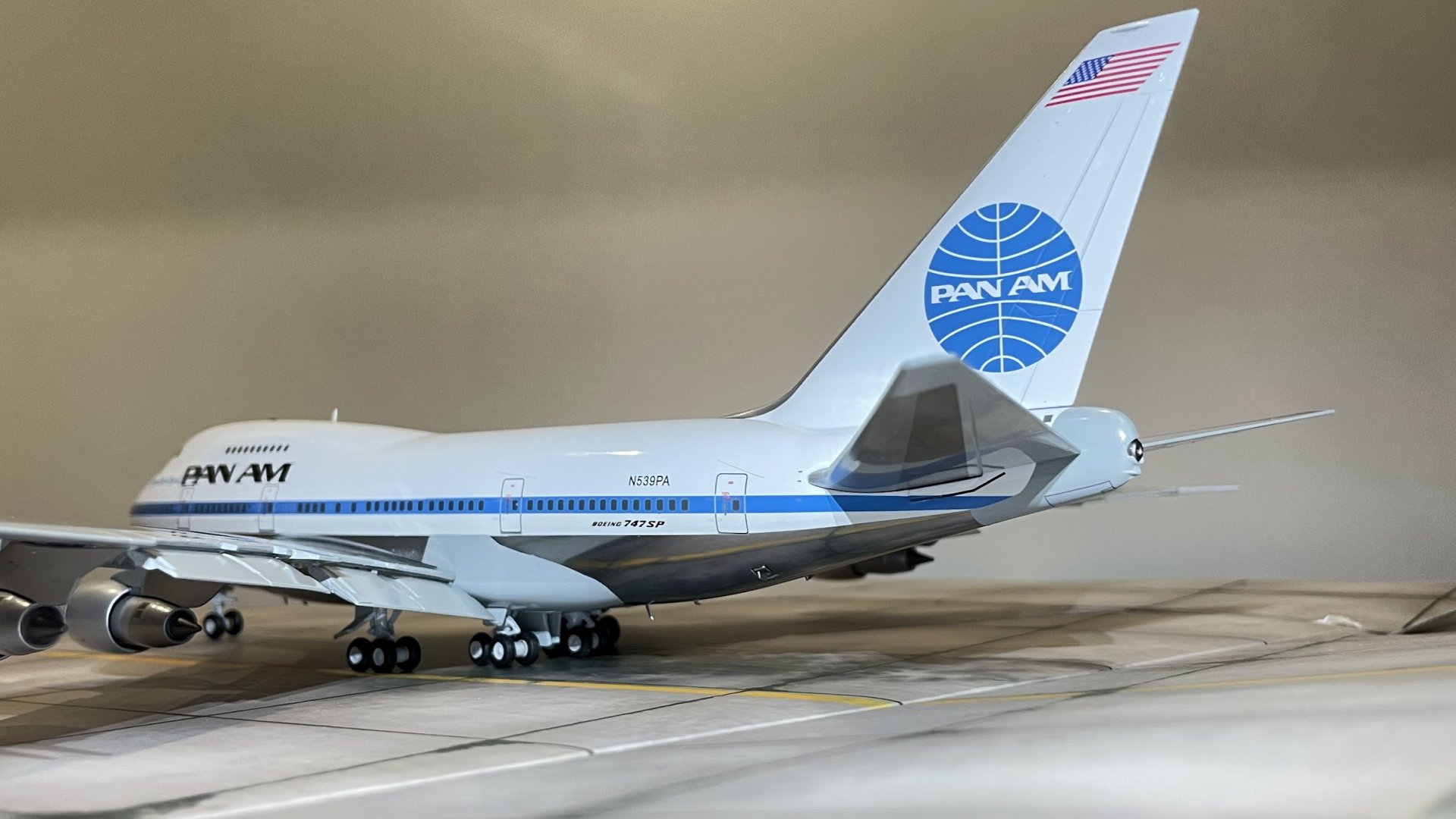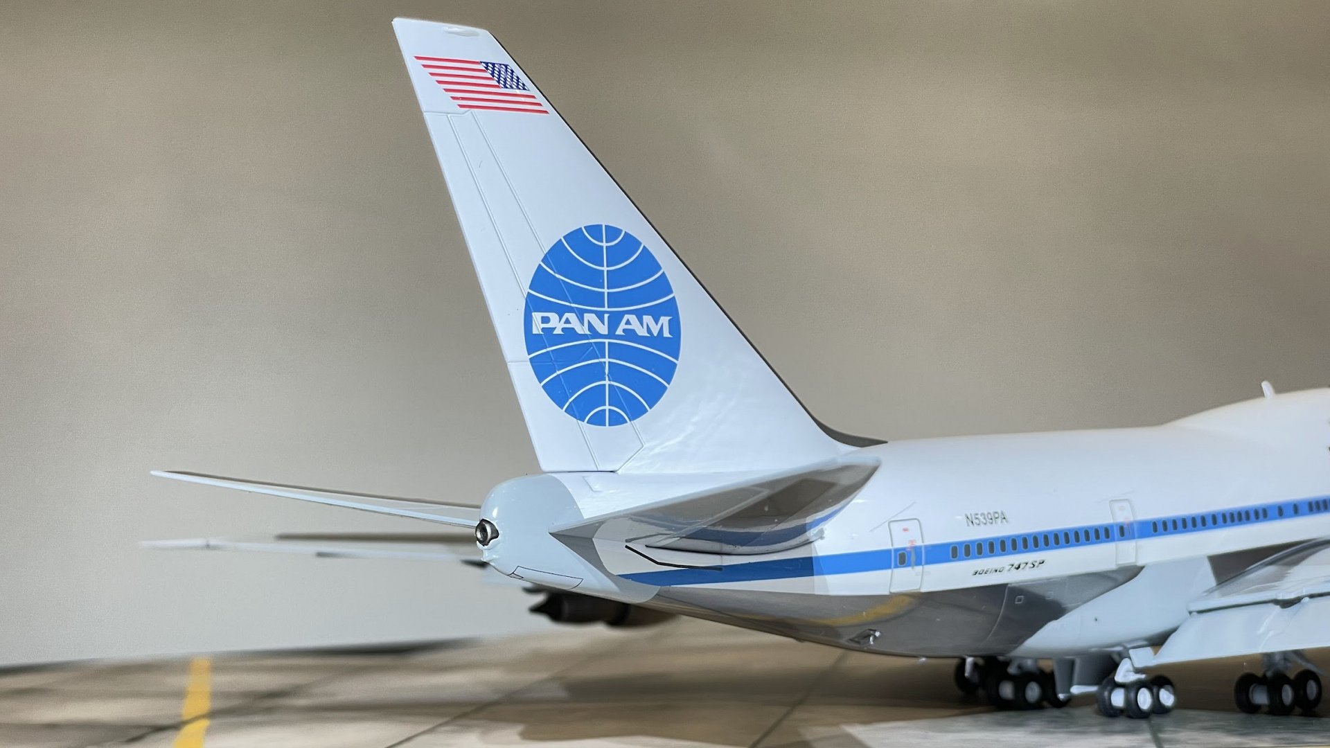 Данная модель представлена в ливрее авиакомпании PAN AM c бортовым номером N539PA. Изучив историю этого самолета, стало ясно, что произведен он был в марте 1979 года, как 22 й выпущенный Боингом вариант SP.