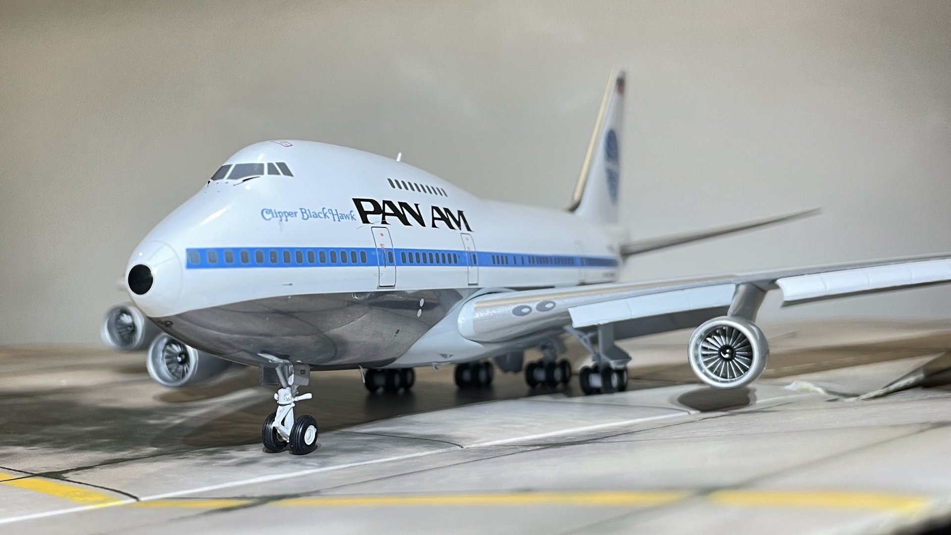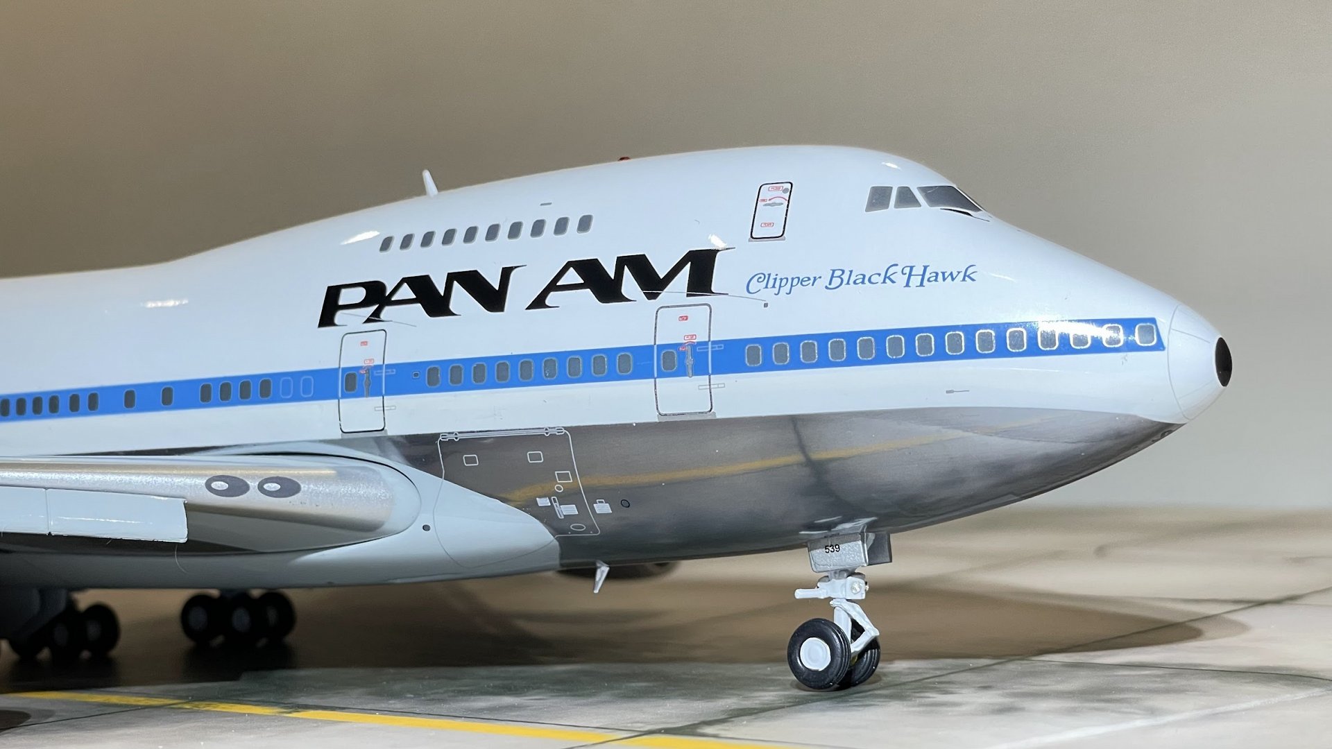 В общем модель оставила у меня приятные впечатления, учитывая тот факт, что я сделал предзаказ на нее в магазине "минилайнер" и не смотря на высокую цену, а она того стоит, получил желаемое не сколько не сожалея приобретя исторический редкий лайнер с ливреей знаменитой авиакомпанией PAN AM, первой кто начал осваивать этот тип. При этом пополнив коллекцию линейки боингов 747 редким экземпляром.