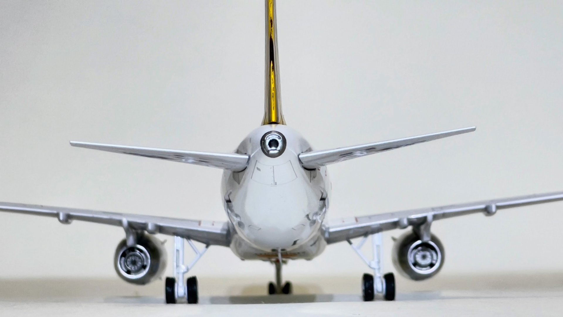 Двигатели IAE V2527 на модели выполнены правильно и точно соответствуют реальному исполнению, лопатки компрессора сделаны аккуратно, их окраска и внутреннего контура двигателя соответствует на приемлемом уровне. Вентилятор компрессора свободно вращаем.