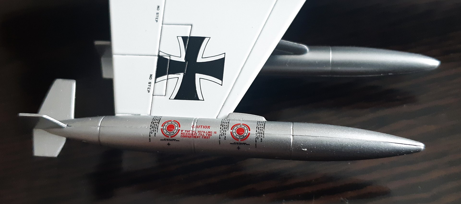 На концах топливных баков, возле его оперения, виден красный бортовой аэронавигационный огонь, который также пришлось дорисовывать.