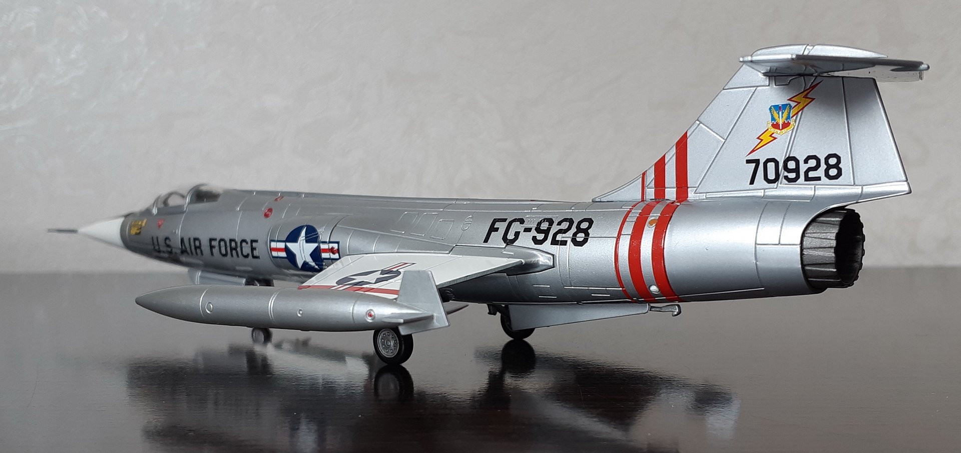 Доброго времени суток дорогие друзья! Сегодня хочу представить сравнительный обзор истребителей-перехватчиков Lockheed «Starfighter» F-104C U.S. Air force из 479 крыла тактических истребителей, авиабаза ВВС США Удорн, Тайланд, 1964 г. и F-104F Luftwaffe, истребительной школы ВВС Германии, от производителей Corgi и Hobby Master соответственно.