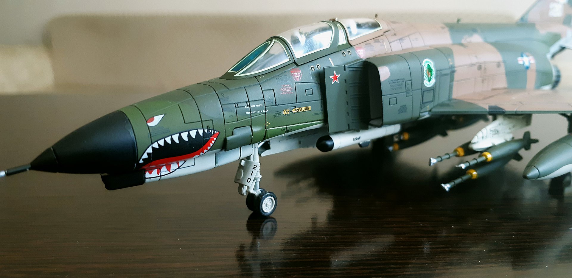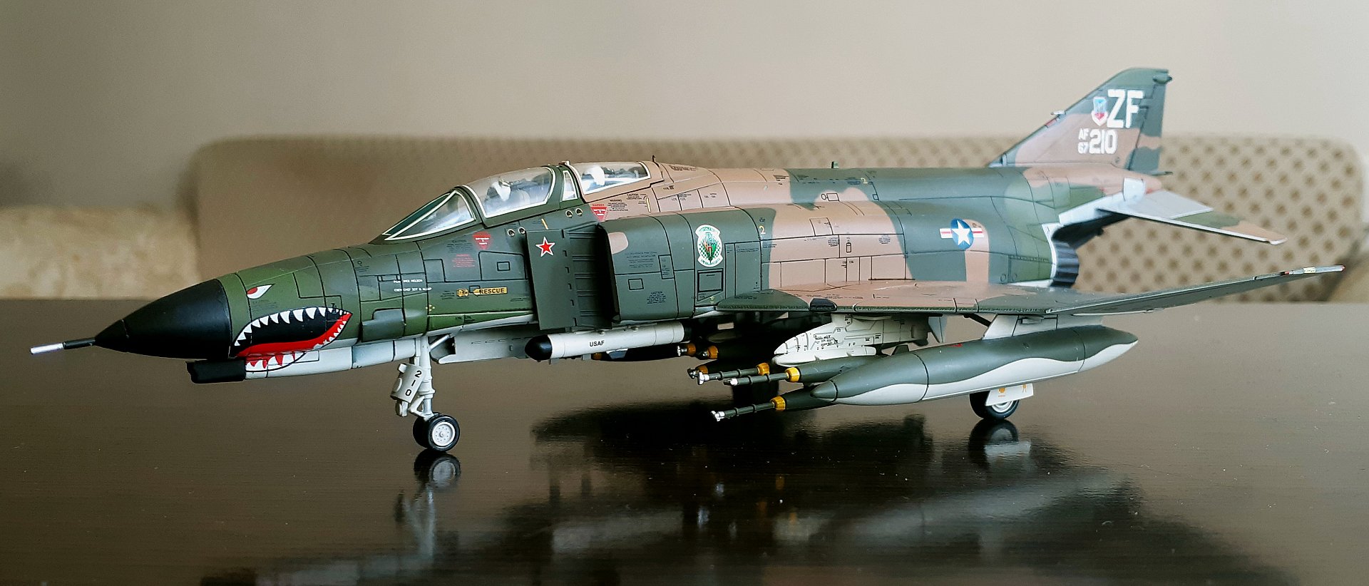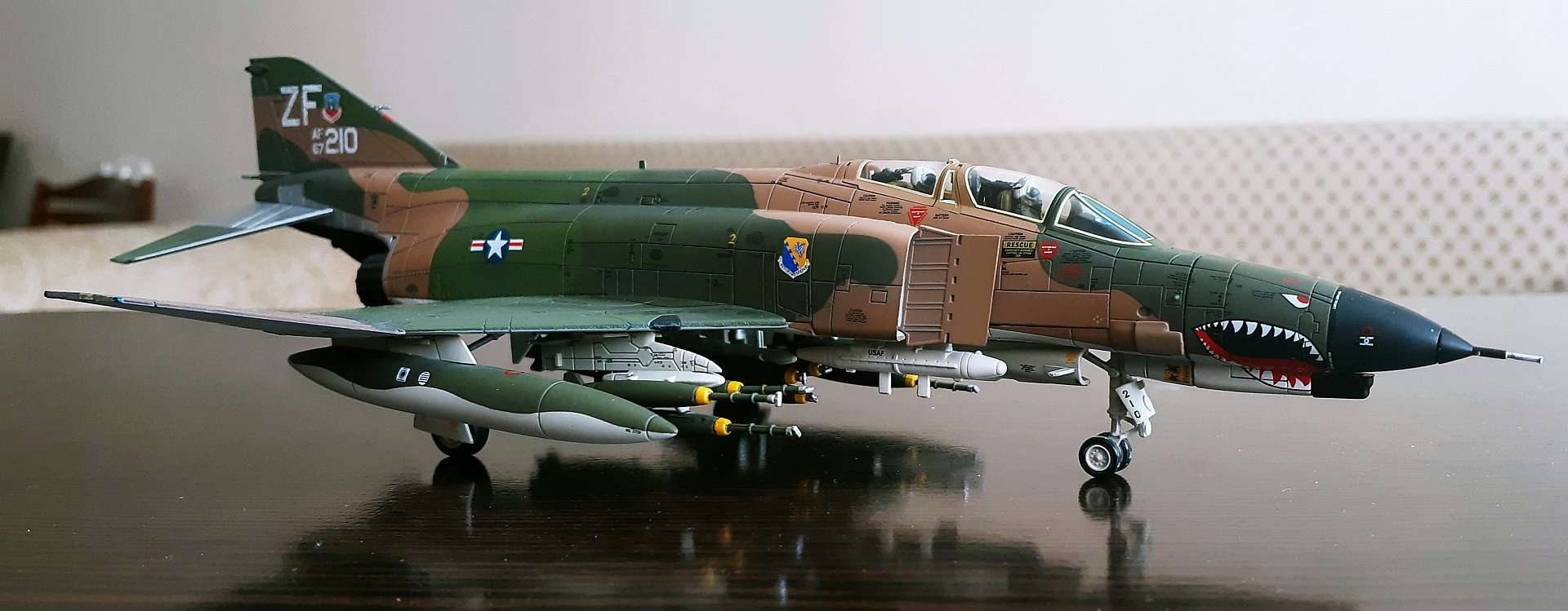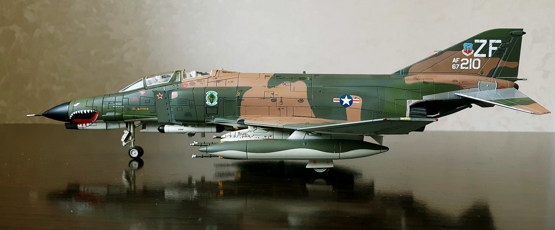 Всем привет! Сегодня решил написать про модель самого массового тактического истребителя дальнего радиуса действия, F-4E Phantom II. Масштаб 1:72, от производителя Air Commander. У меня это вторая модель от данного производителя. Первая это F-4J Phantom II, US NAVY (см. фото в конце обзора).
