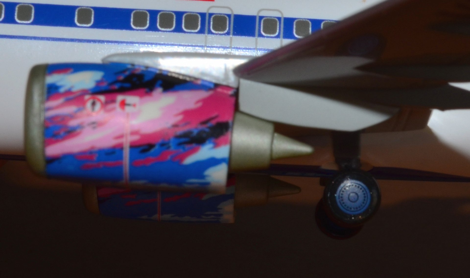 Такая она пришла изначально + ко всему на правой плоскости сверху была небольшая царапинка, на которую в последствии лёг бортовой номер.