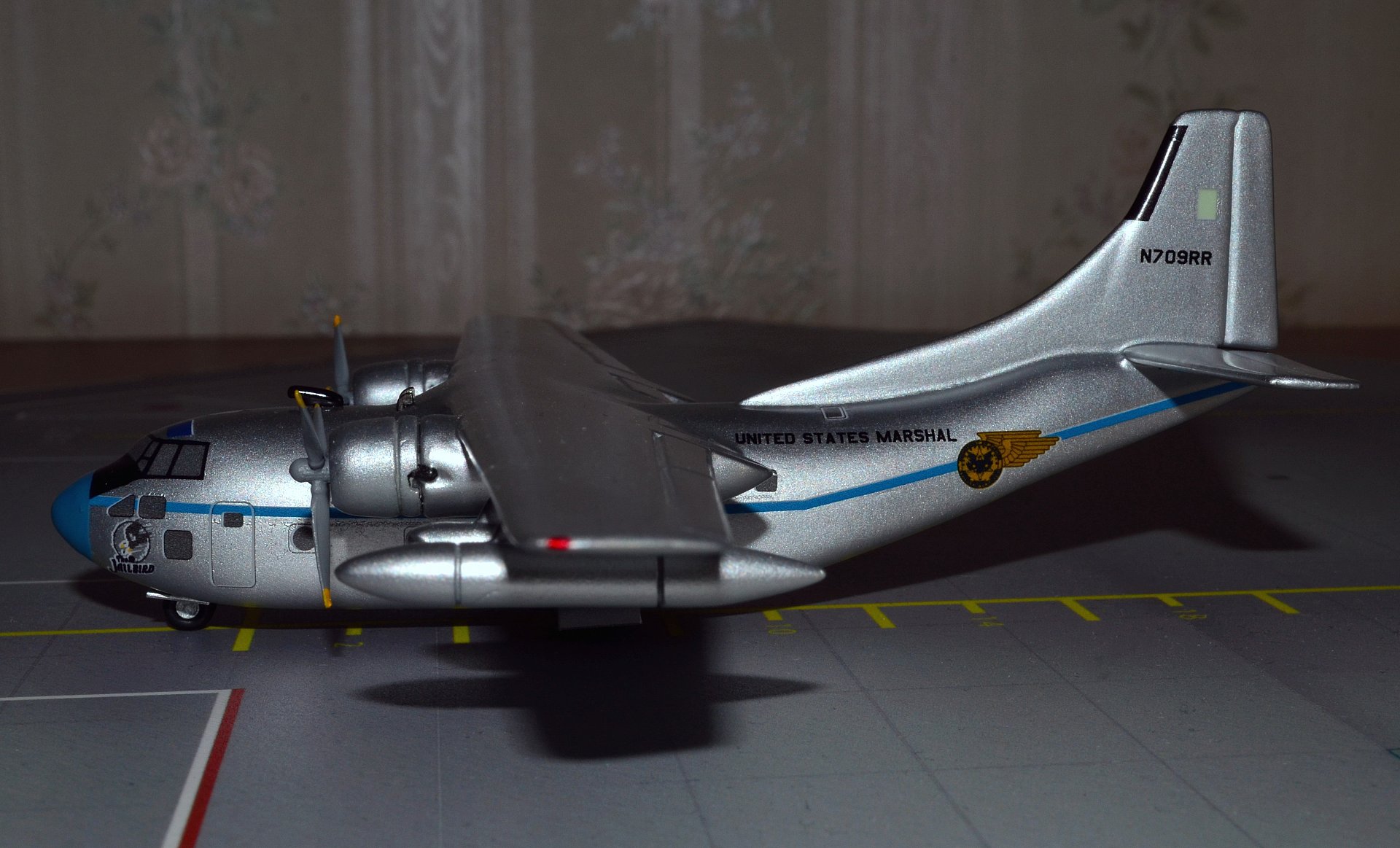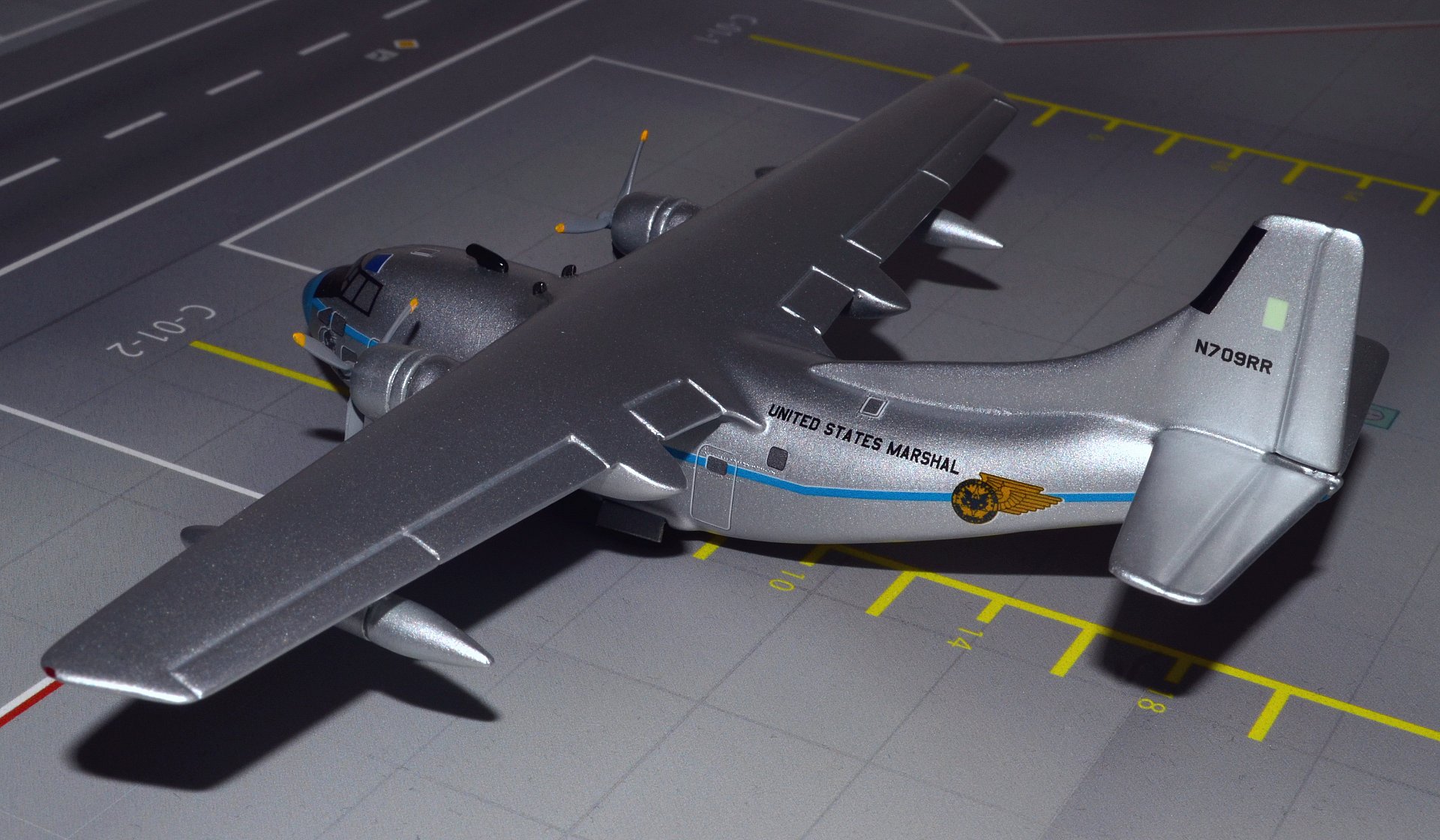 Всем доброго дня! Сегодня представляю Вашему вниманию модель самолета Fairchild C-123K Provider с бортовым номером N709RR, US MARSHAL от производителя Sky Classic, в масштабе 1:200, который был показан в фильме «Воздушная Тюрьма», для транспортировки заключённых.