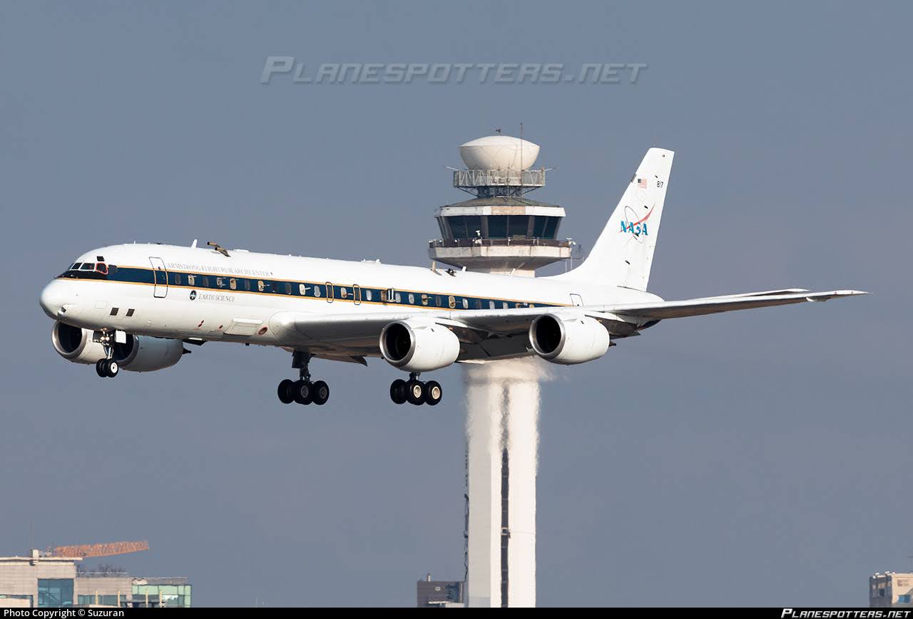 NASA сильно модифицировала Douglas DC-8 для использования в качестве летающей научной лаборатории. Самолёт базировался в исследовательском центре NASA Армстронга в Палмдейле, штат Калифорния. С помощью DC-8 выполняются четыре типа задач: разработка датчиков, проверка спутниковых датчиков, получение телеметрических данных о запуске космических аппаратов или их возвращении в атмосферу, а также оптическое слежение и другие исследования поверхности Земли и атмосферы. Данные, собранные с помощью самолёта на высоте полёта и методом дистанционного зондирования, использовались для исследований в области археологии, экологии, географии, гидрологии, метеорологии, океанографии, вулканологии, химии атмосферы, криосферы, почвоведения и биологии.
