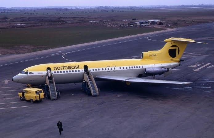 В 1974 году произошло слияние государственных авиакомпаний BOAC и BEA в British airways, но Northeast Airlines продолжала летать в своей ливрее с надписью British airways на борту.