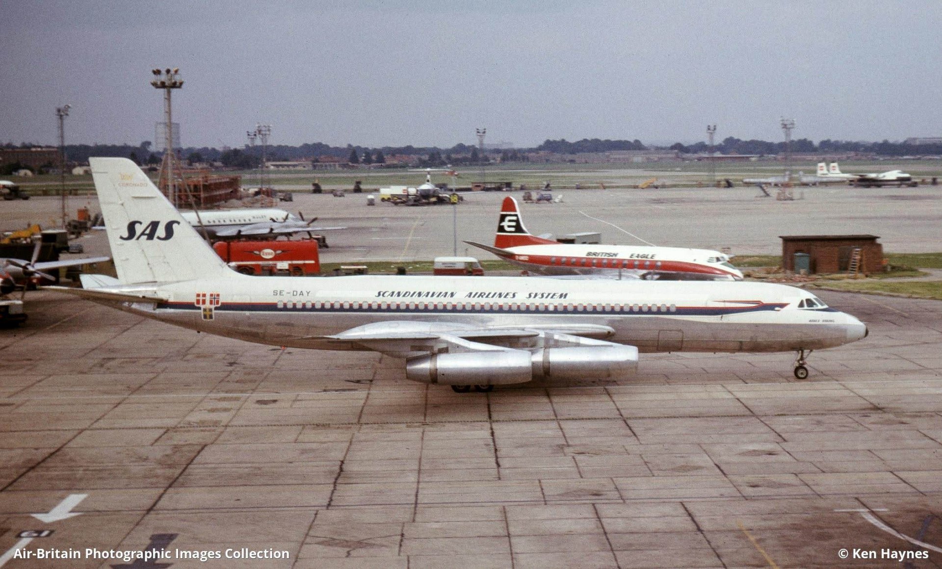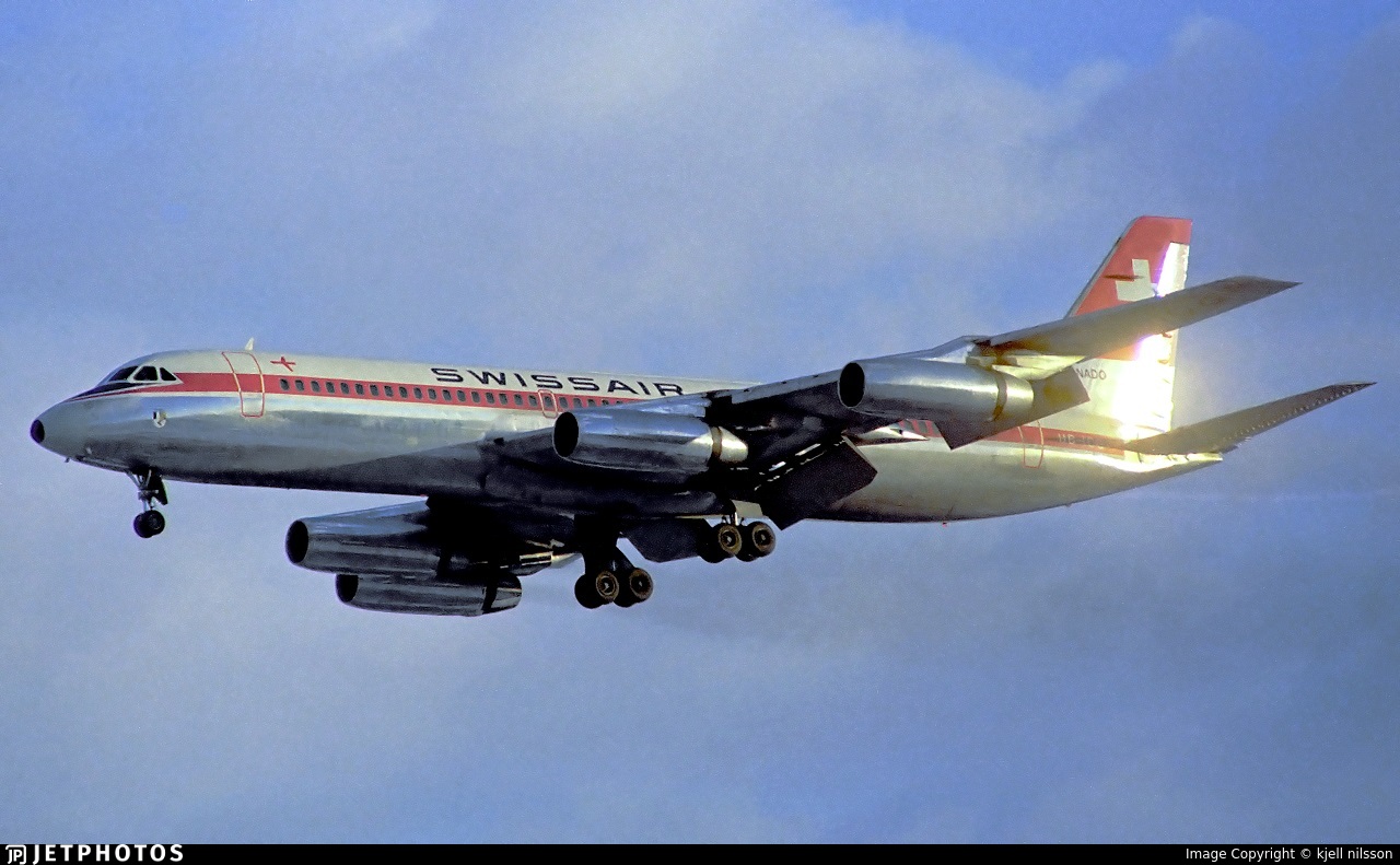 В итоге, первый самолёт предназначенный для SAS, был получен непосредственно с завода в ливрее SAS 23 февраля 1962 года. Ему была присвоена регистрация SE-DAY и собственное имя Adils Viking. Самолёт имел компоновку, рассчитанную на 42 места в первом классе и 57 в экономическом. Он был поставлен на рейсы Копенгаген - Токио с промежуточными посадками. Позже добавились рейсы в Восточную Африку и Южную Америку. Второй самолёт с регистрацией SE-DAZ поступил 10 апреля и был отдан в сублизинг в совместную с SAS Thai Airways International до конца 1963 года. К первому февраля 1966 года оба самолёта были возвращены в Swissair.