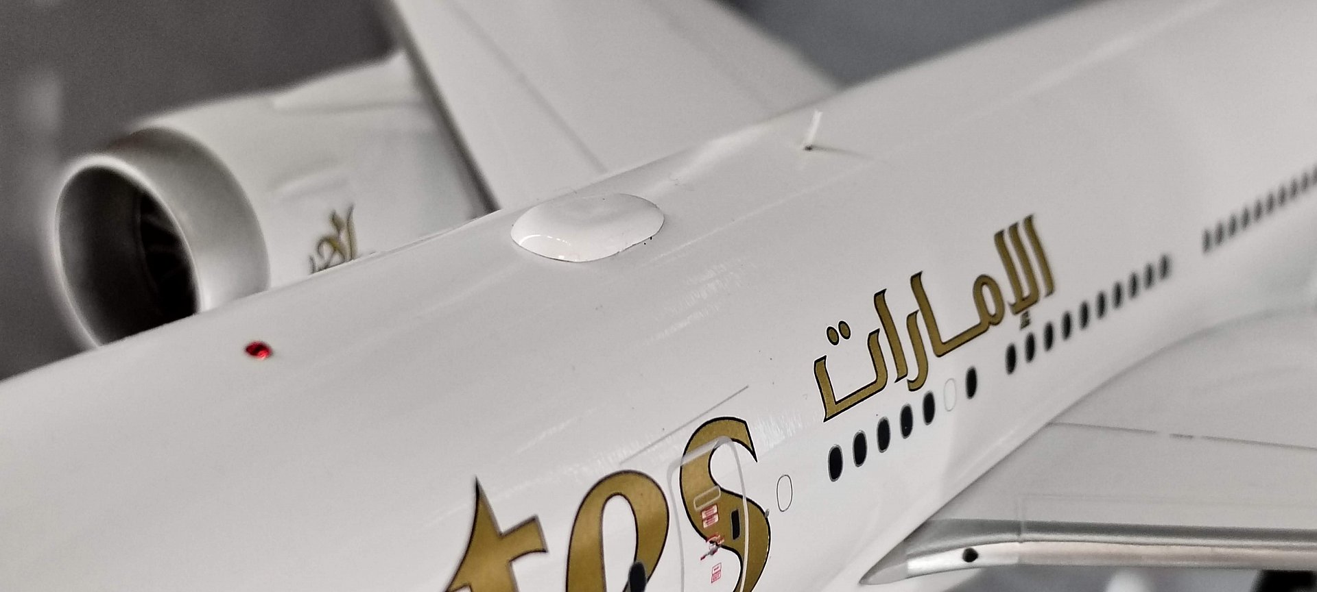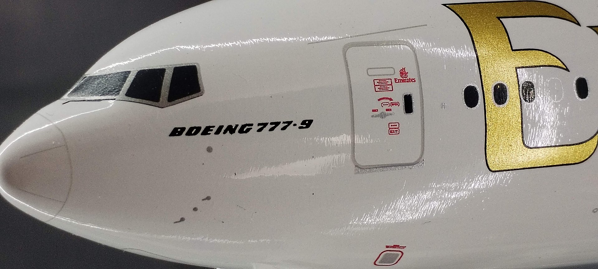 Покупая эту модель в августе 2023 года в Минилайнере я очень надеялся, что в следующем году увижу сообщения о том, что первые из заказанных B 777-9 поступили в парк Emirates. Но чуда в прошлом году не случилось и не случится в ближайшие пару лет.