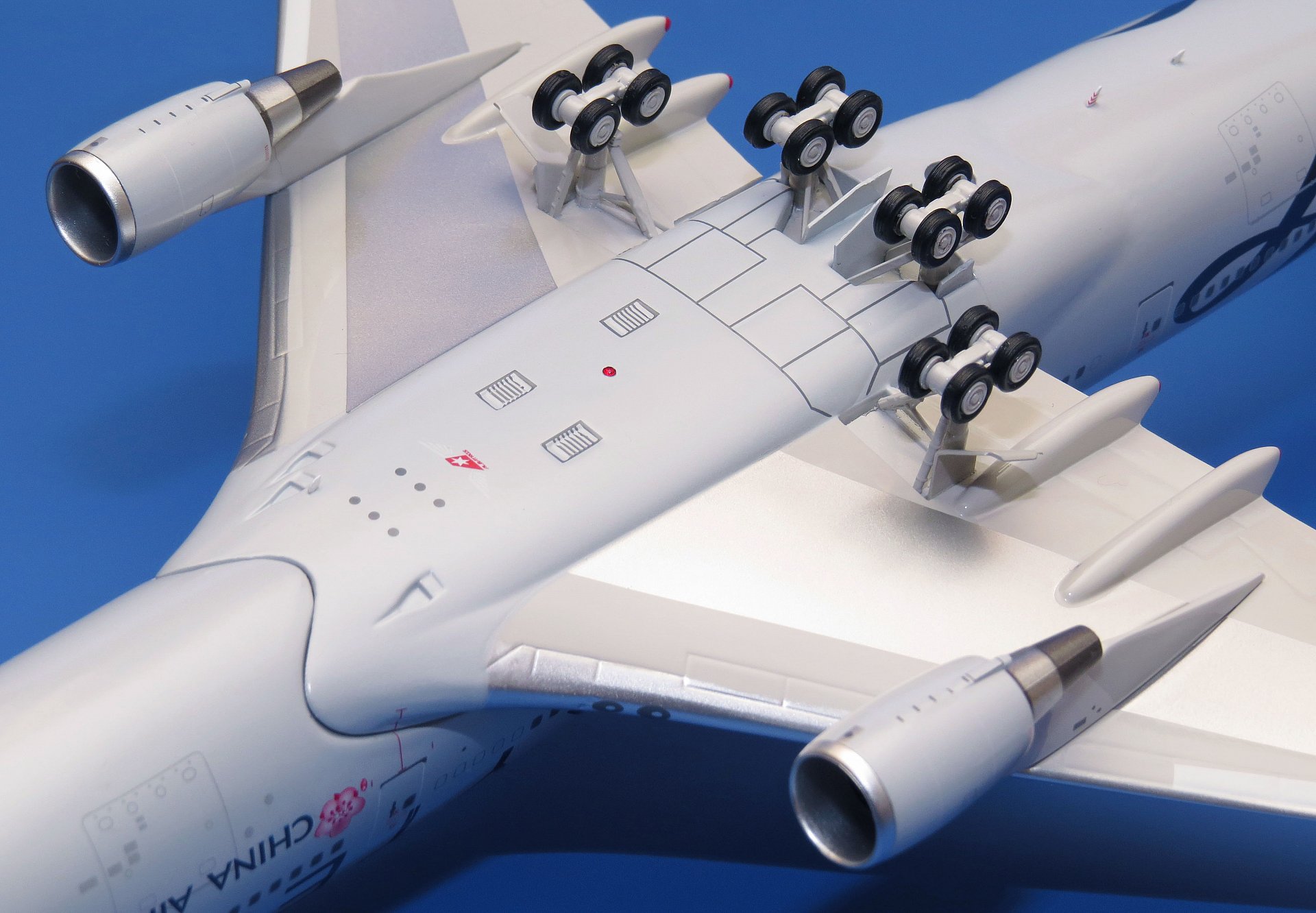 Уважаемые коллекционеры! Рад продемонстрировать подробные фотографии модели самолёта Boeing 747-400 авиакомпании China Airlines в фирменной ливрее альянса SKYTEAM. В моей коллекции уже есть модель аналогичного самолёта в масштабе 1:400 (от Phoenix), в такой же ливрее, но с бортовым номером B-18206. А представленная модель, в масштабе 1:200, имеет регистрацию B-18211. Всего в авиакомпании China Airlines было 2 таких Боинга, и оба, к сожалению, на сегодняшний день выведены из эксплуатации.